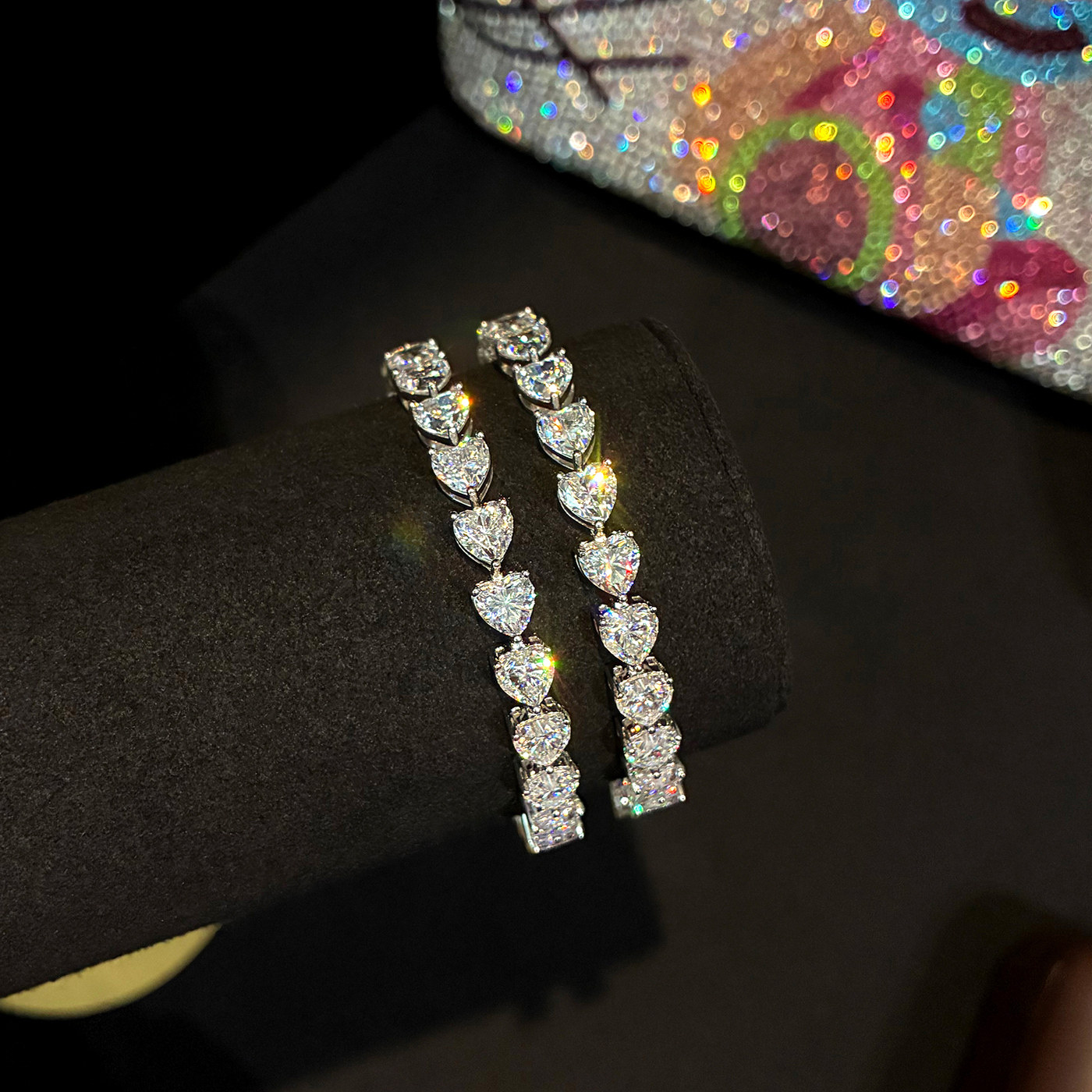 高级感超闪50分心形钻石手链女925银满钻爱心人工仿真钻奢华首饰