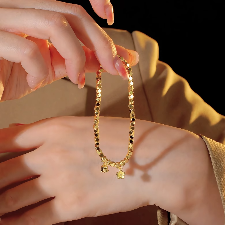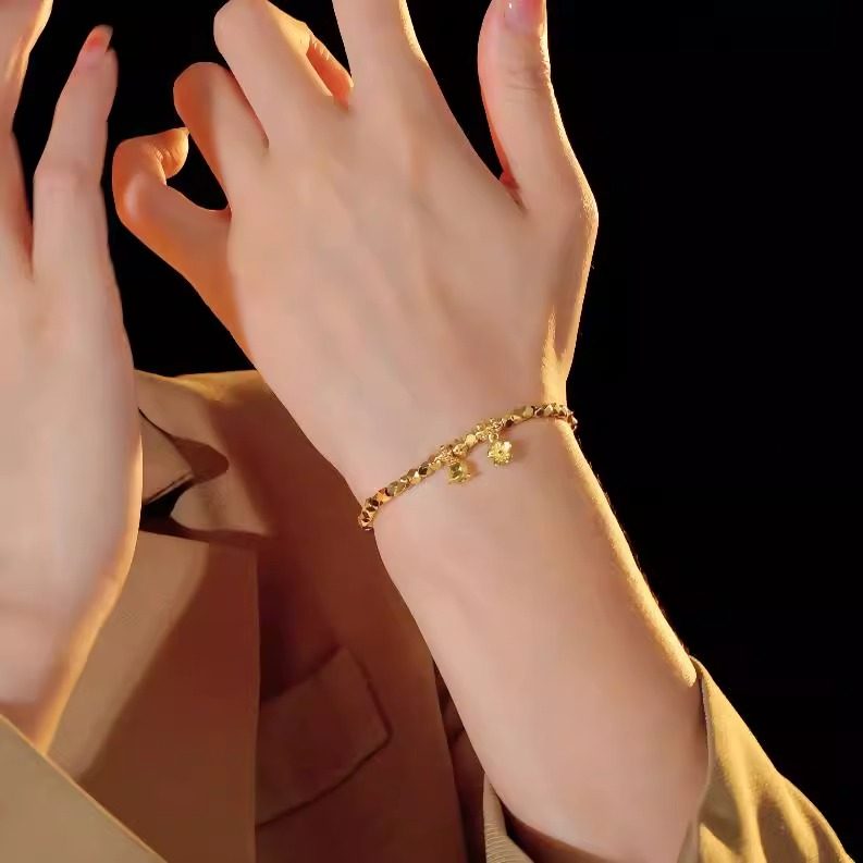 碎冰冰铃兰花钛钢手链轻奢小众精致复古金色手饰女配饰高级感手串