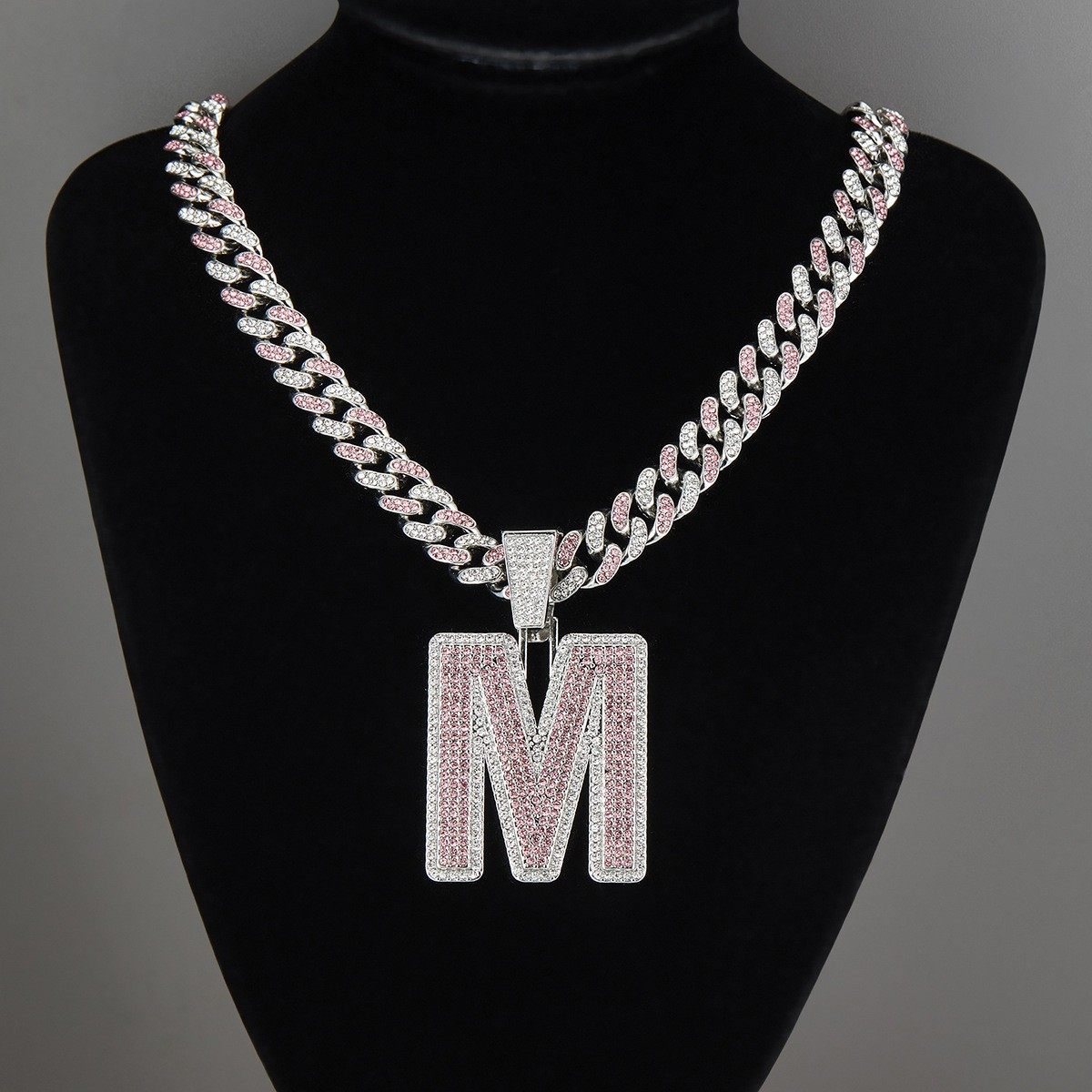 欧美镶钻说唱个性字母吊坠项链轻奢时尚百搭男女款古巴满钻项链