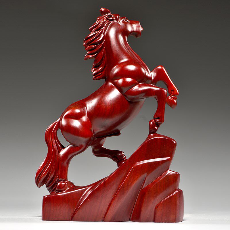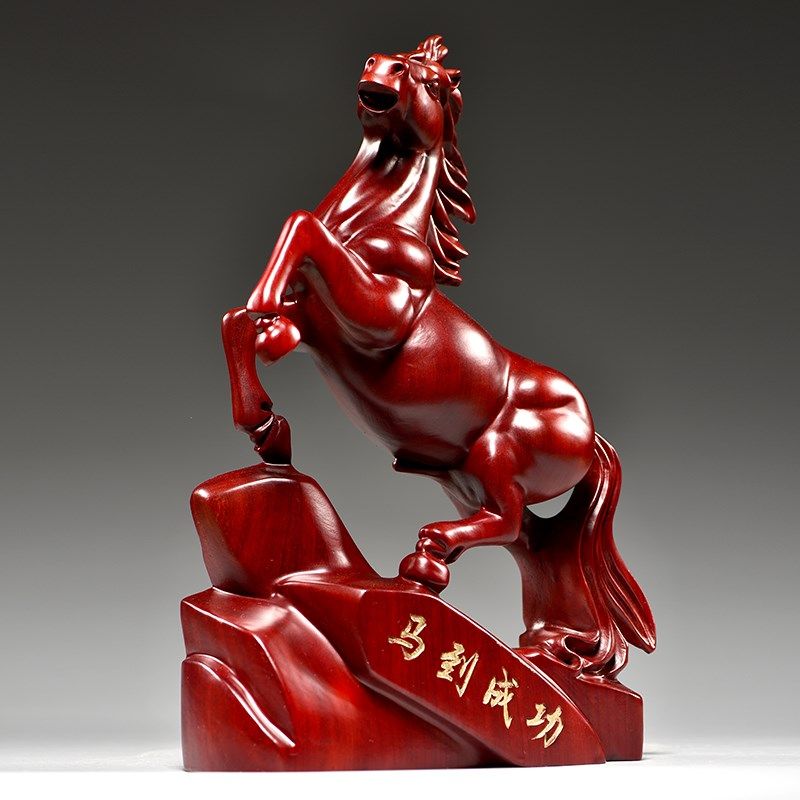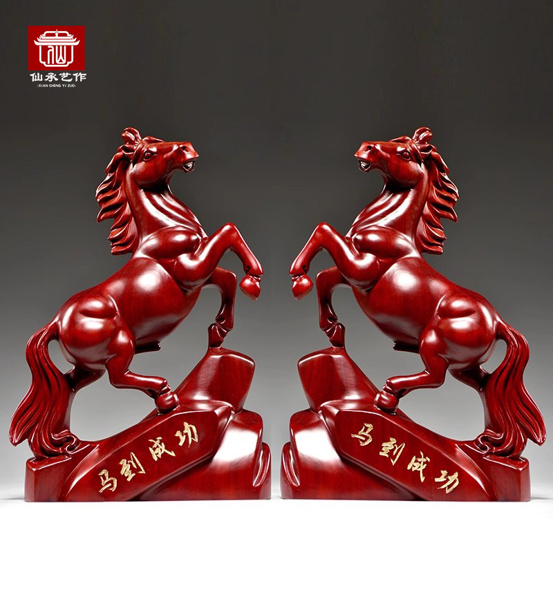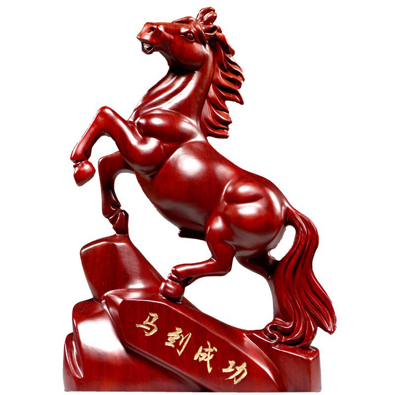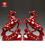 红木马摆件一对马工艺品红色木马摆件家居实木质雕刻马到成功饰品