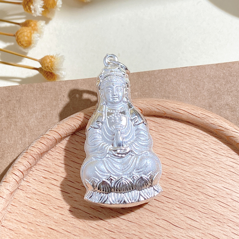 S999纯银观音吊坠男女足银菩萨宝宝挂坠吊牌手工项链坠子银饰礼物