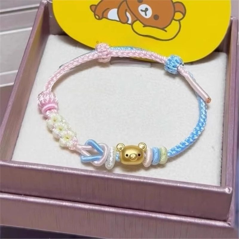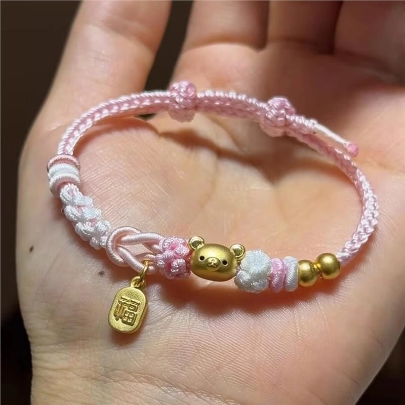 黄金包银可爱轻松熊小熊吊坠黄金色转运珠串珠手绳diy配件女手链