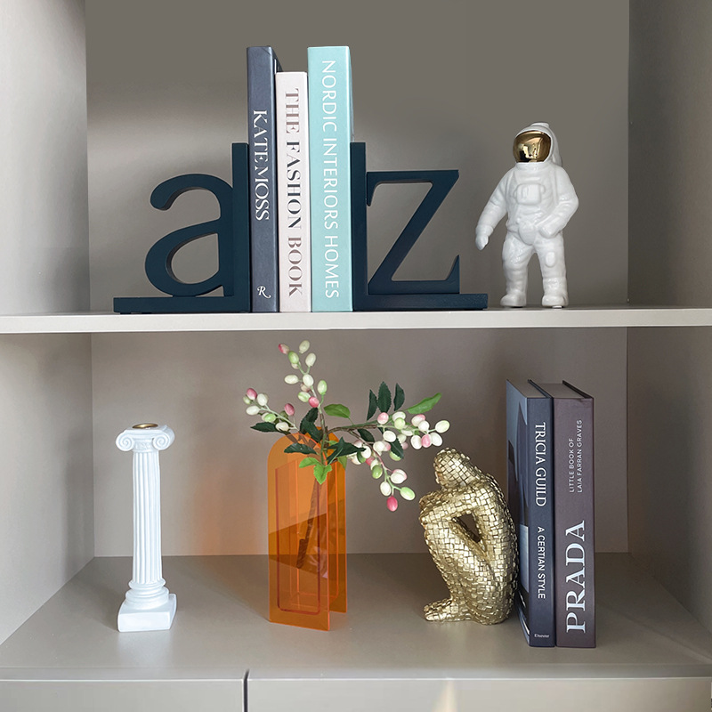现代新中式木质字母书档摆件样板间书房办公室客厅玄关桌面装饰品
