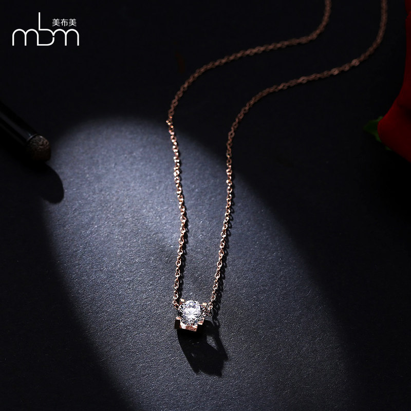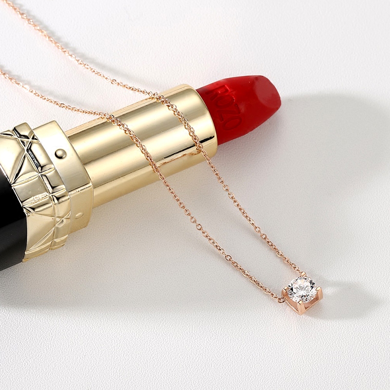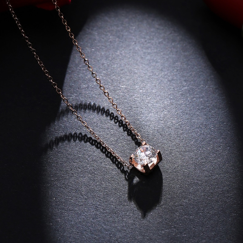 简约时尚气质钛钢单钻方钻项链女韩版镀18K玫瑰金彩金锁骨链饰品