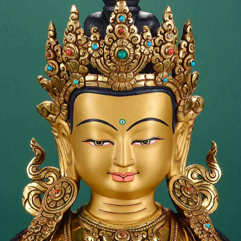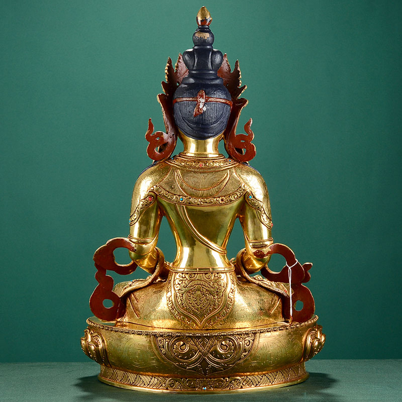 长寿佛铜像像尼泊尔家用现代铜鎏金15寸佛桌面无量寿佛摆件