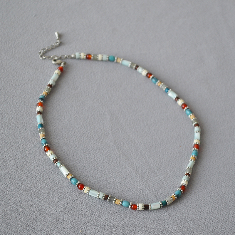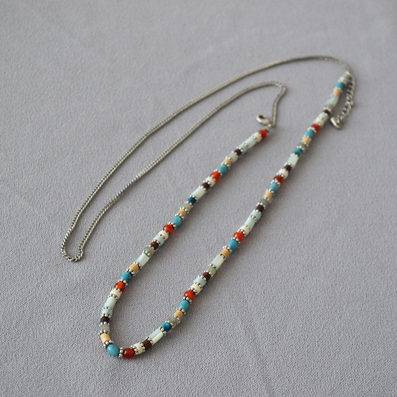 日系小众设计文艺复古超美马卡龙拼色串珠双层叠带气质项链毛衣链