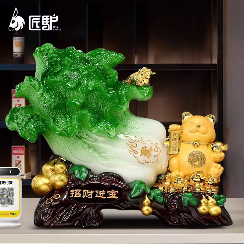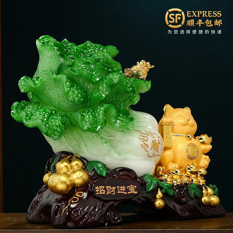 招财进宝白菜摆件招财猫客厅电视柜酒柜店铺收银台装饰品开业礼物