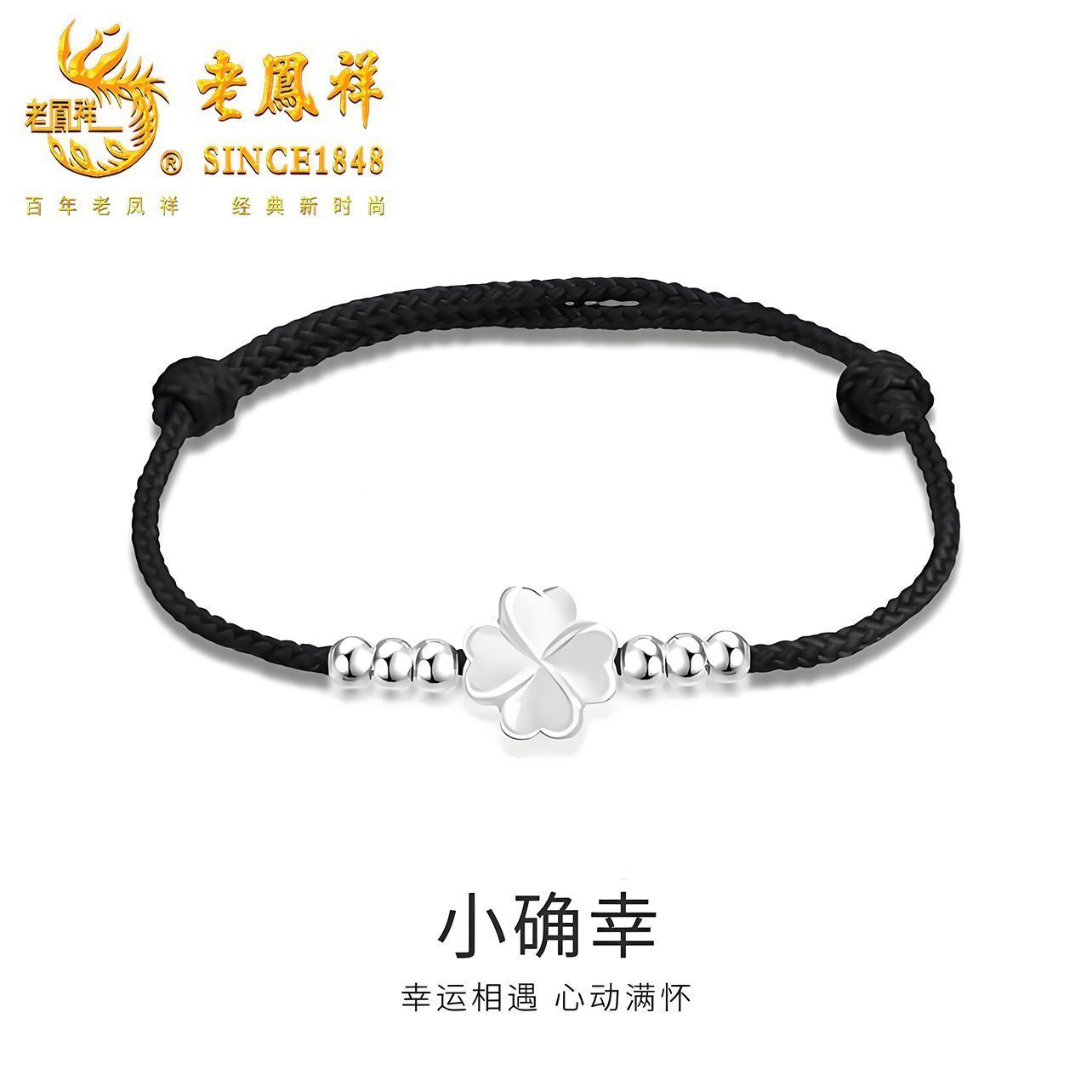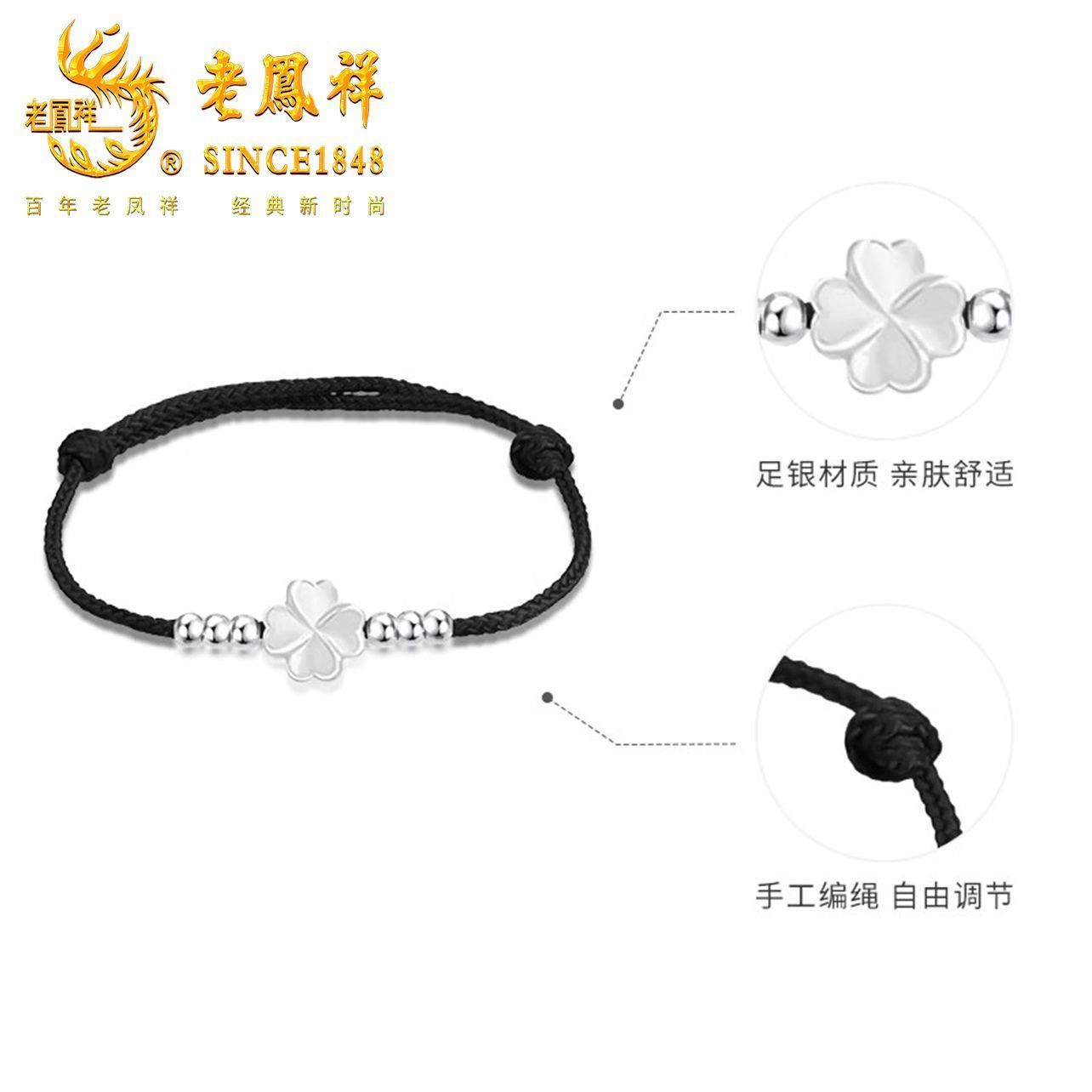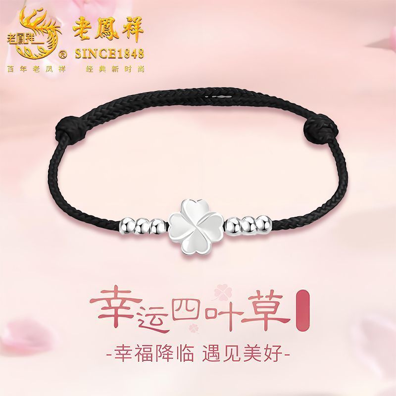 老凤祥足银四叶草手绳轻奢高级感纯银手链小众设计生日礼物送女友