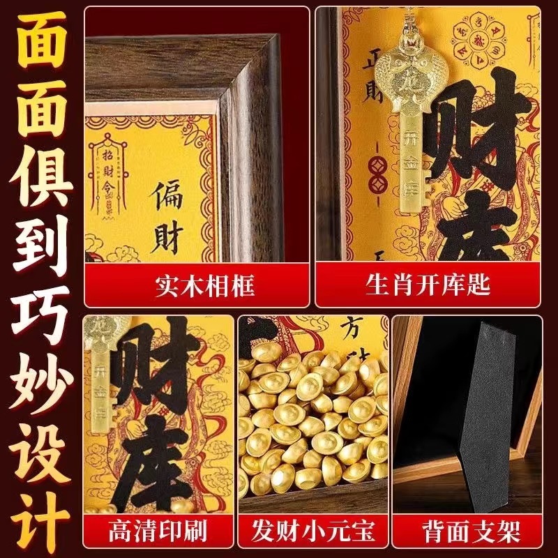 开金库黄财神财相框办公室工位摆件十二生肖金钥匙招财客厅金元宝