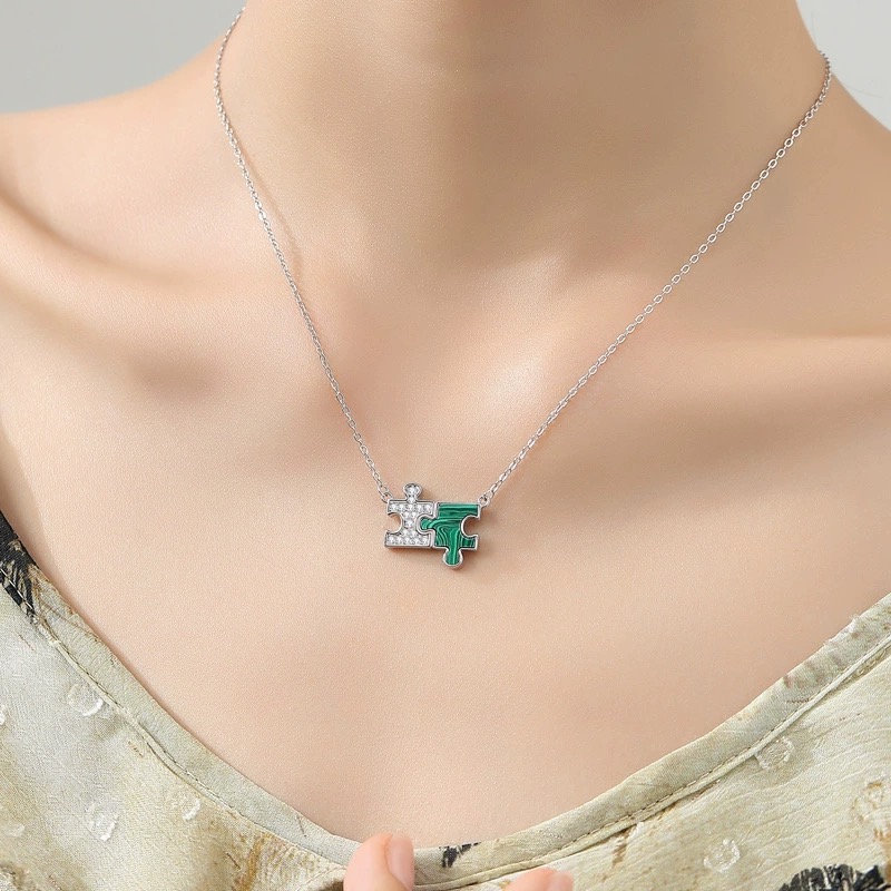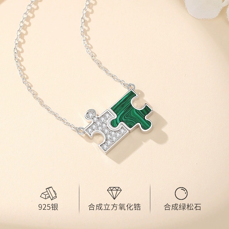 闽粤纯银拼图吊坠项链女夏季简约个性小众设计高级感饰品七夕礼物