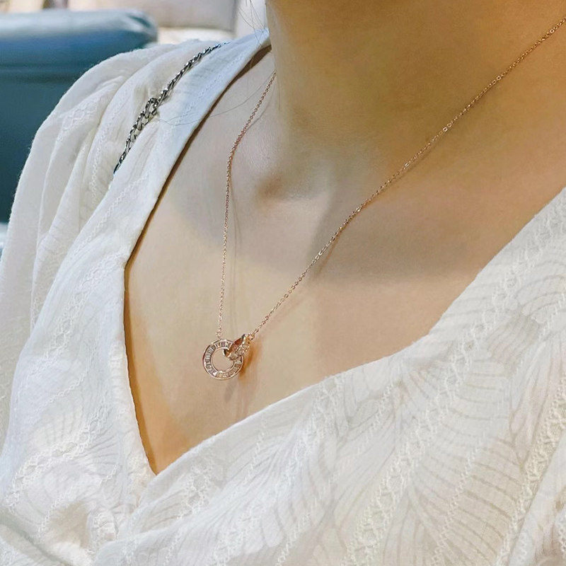 钛钢项链 环环相扣项链女轻奢小众设计双环锁骨链不褪色毛衣链