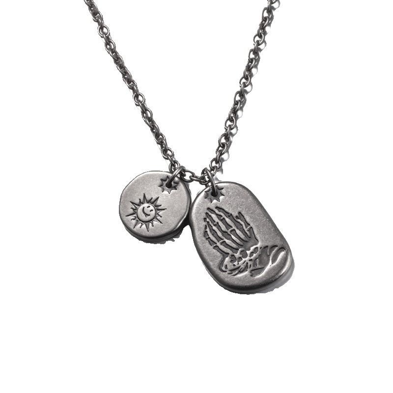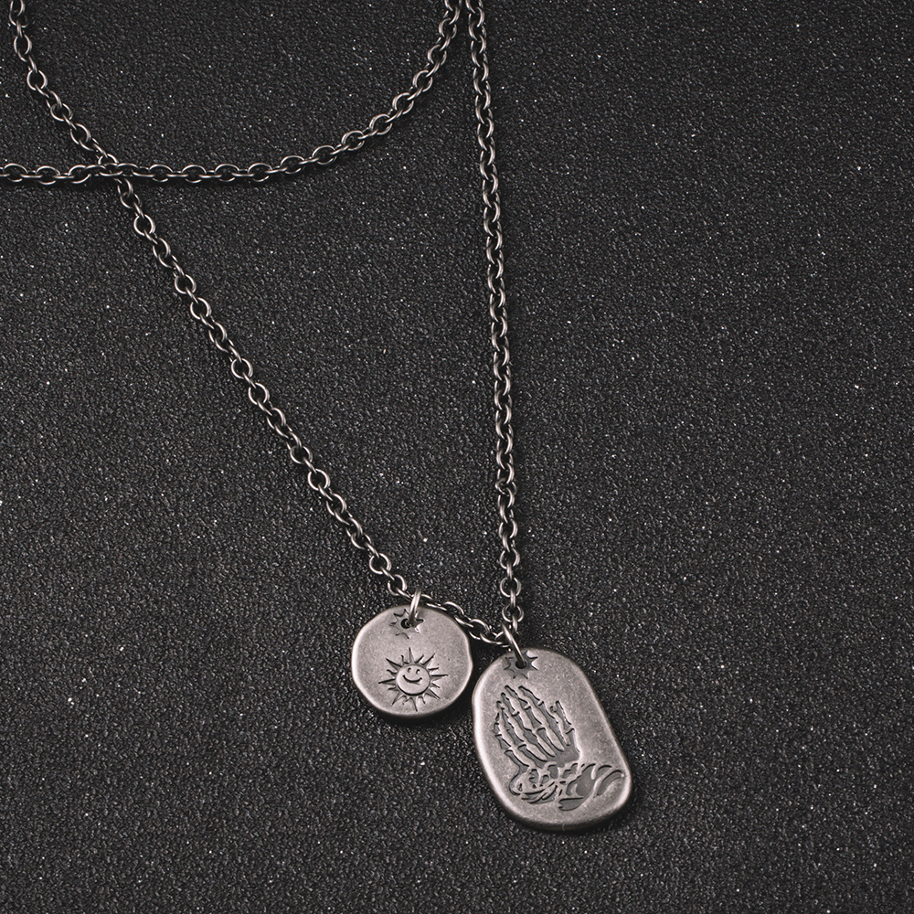 祈祷之手欧美项链复古嘻哈个性男潮设计感做旧吊坠祈福开心项链
