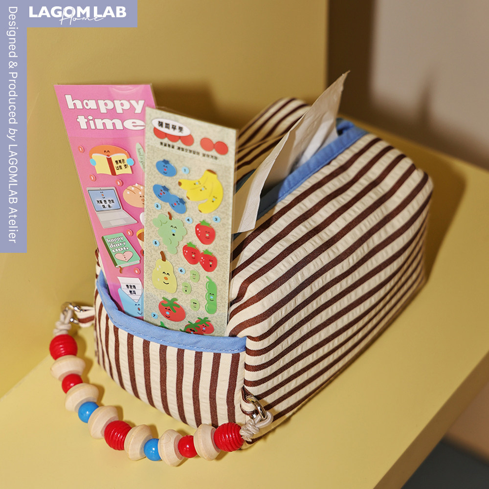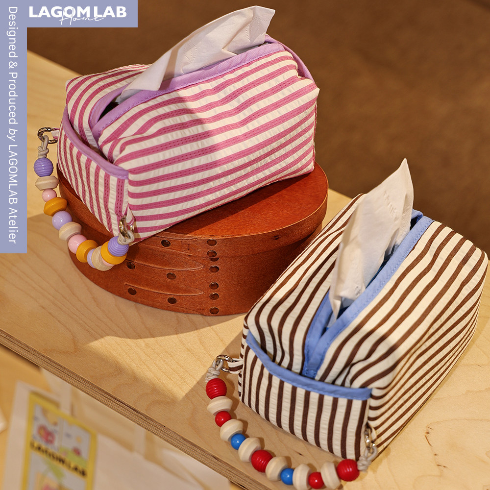 LAGOMLAB原创木珠链可挂可拆卸车载纸巾包收纳袋条纹布制纸巾套