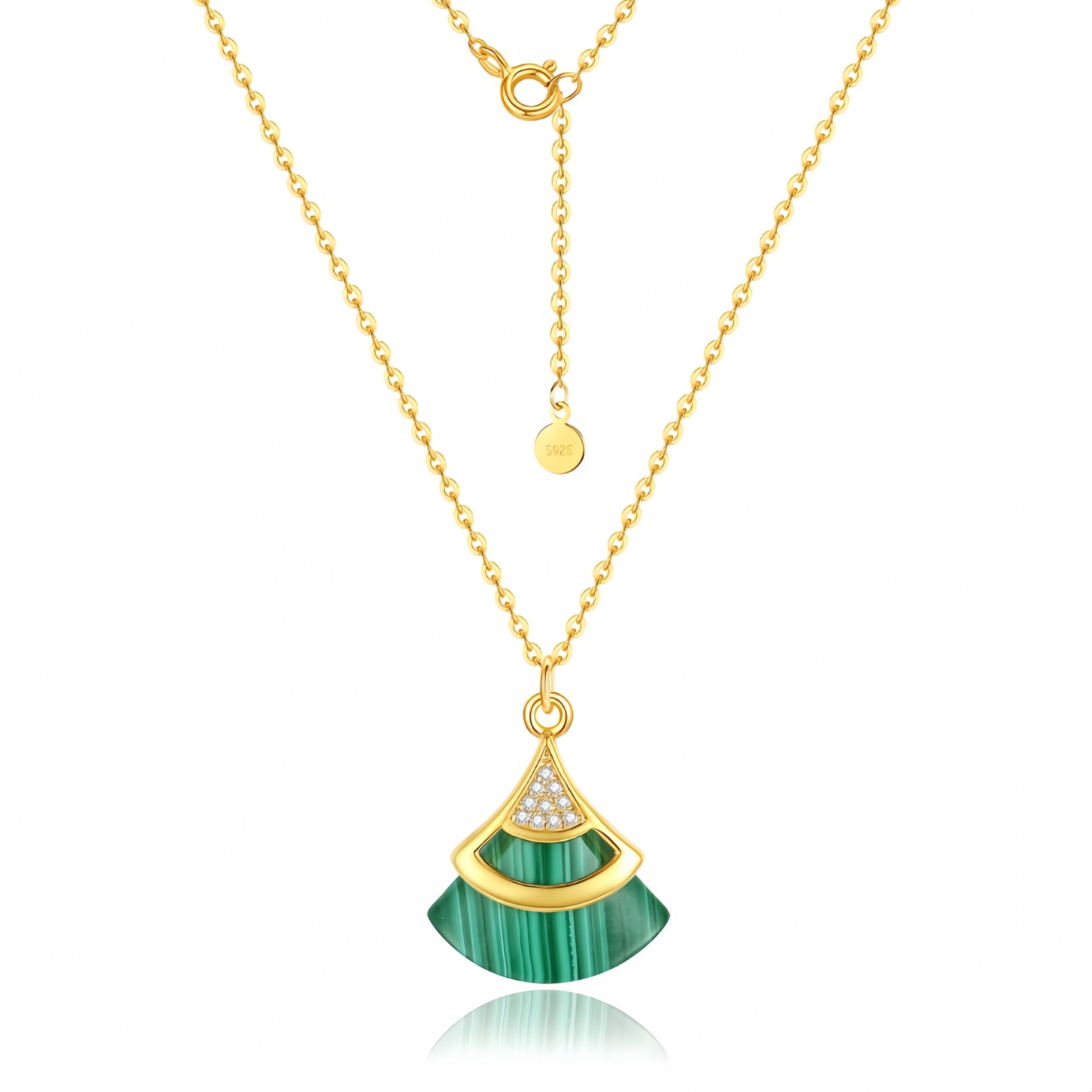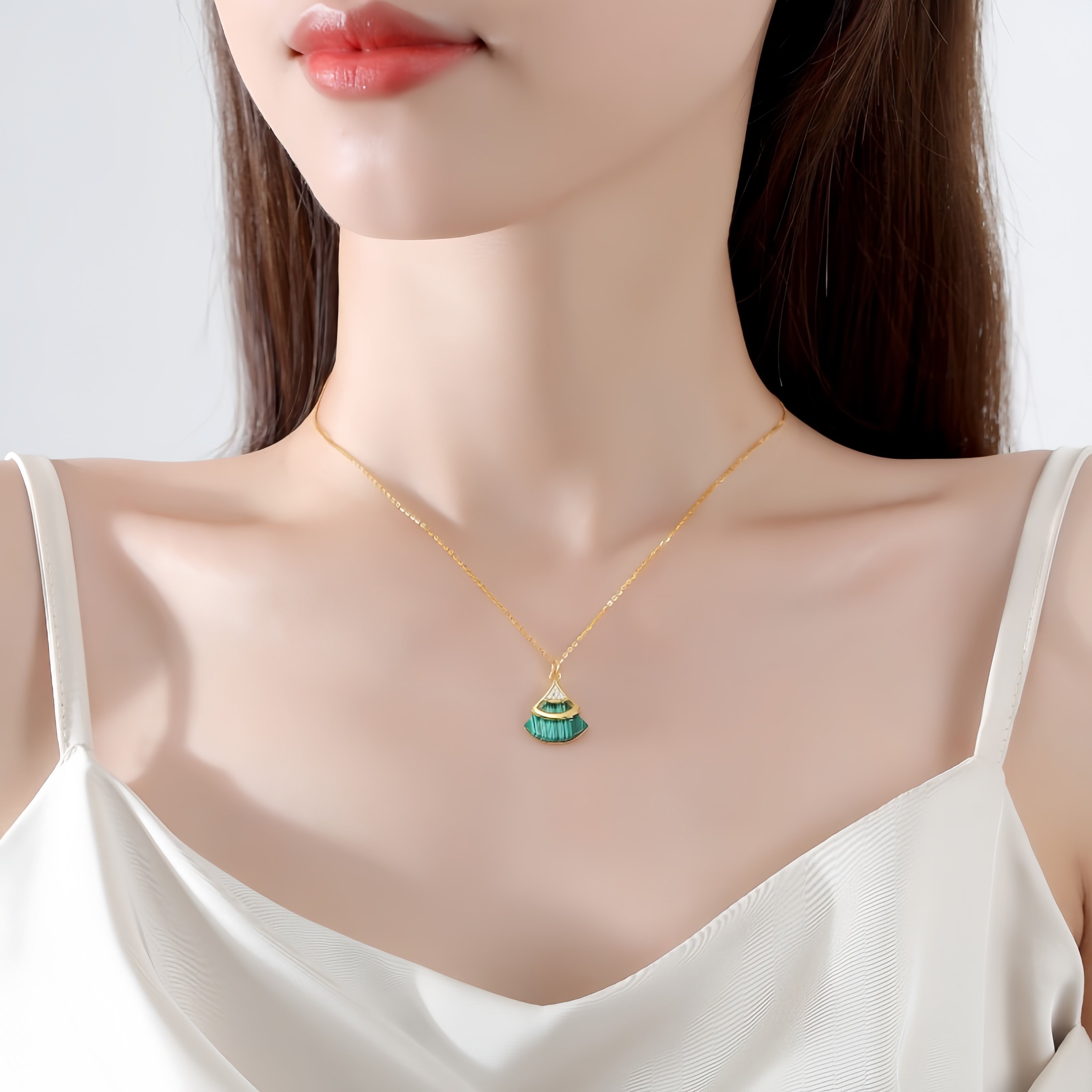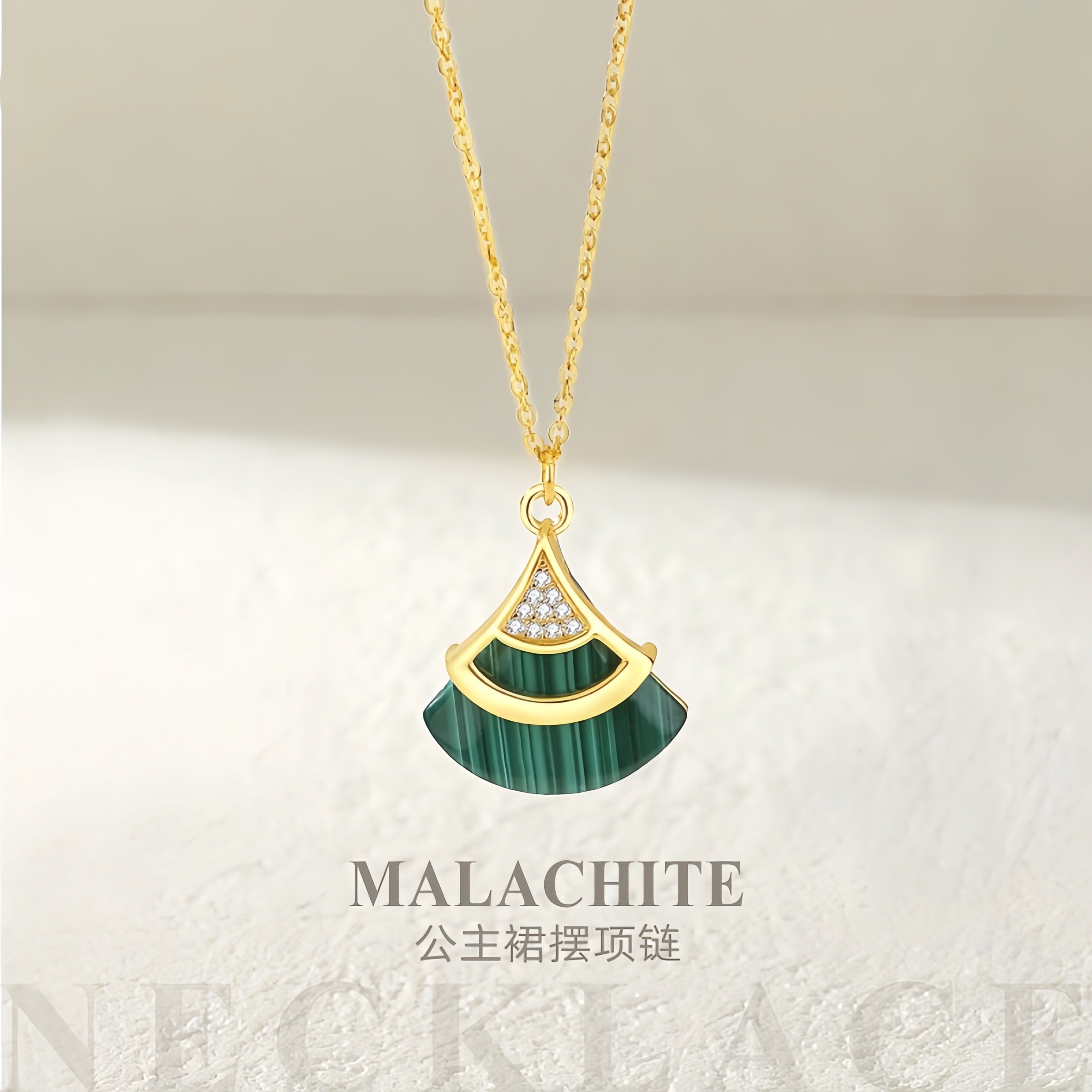 晶禧汇 公主裙摆S925纯银锁骨链 天然孔雀石项链小裙子扇形礼物女