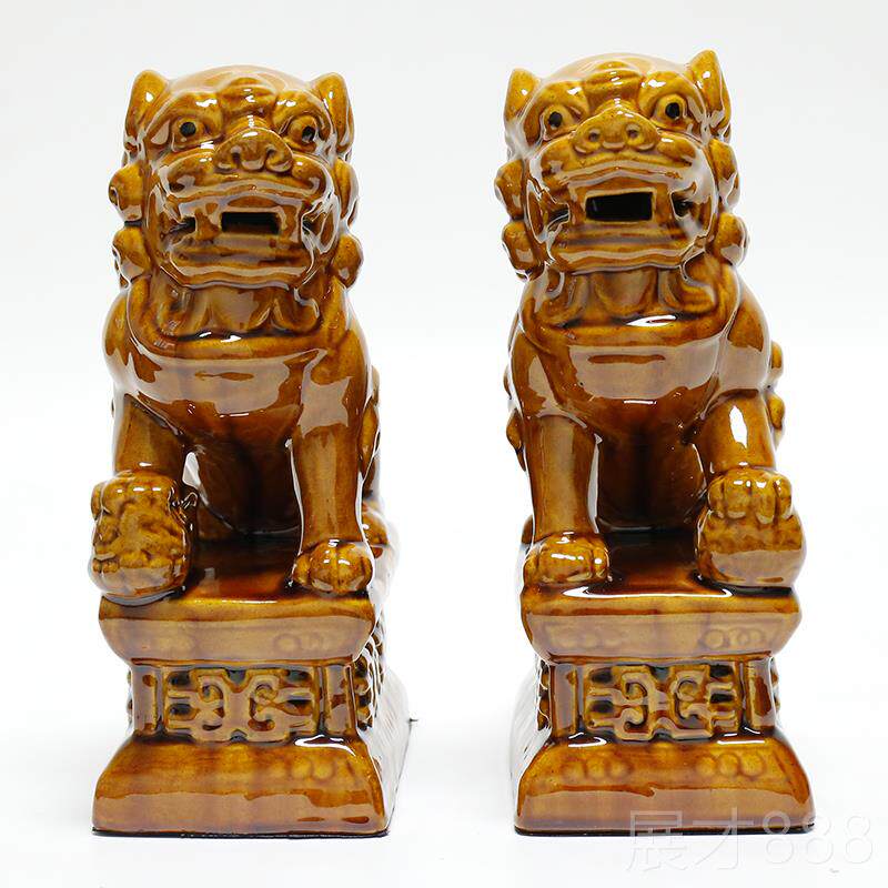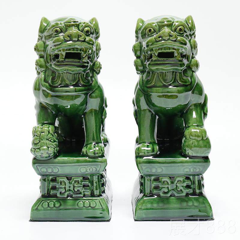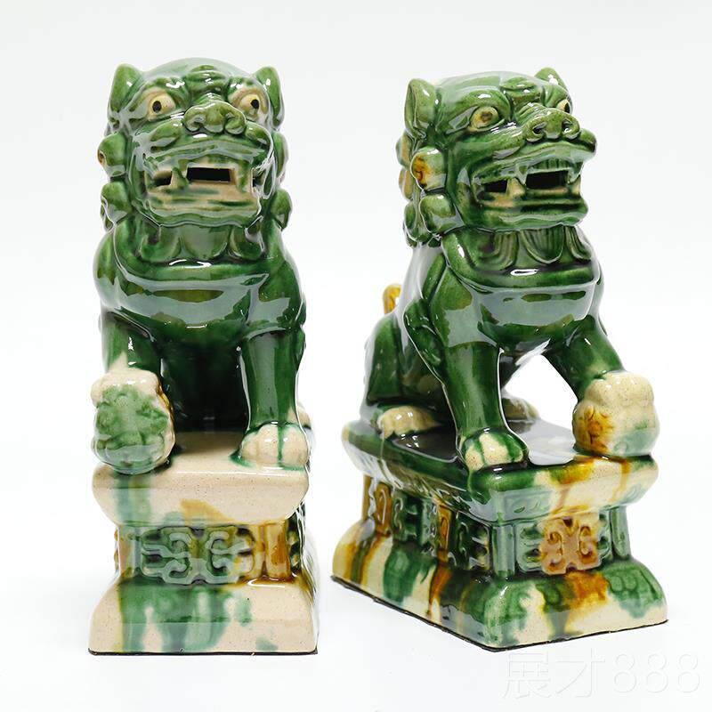 正品纯手工唐狮三彩陶瓷蓝色大号花色狮子简约现代风格饰 纯手工