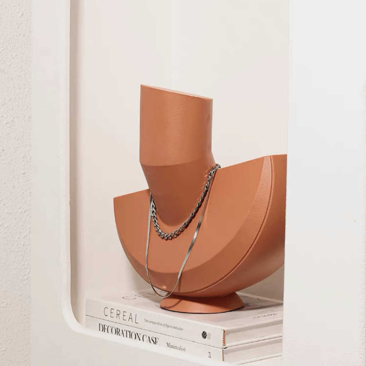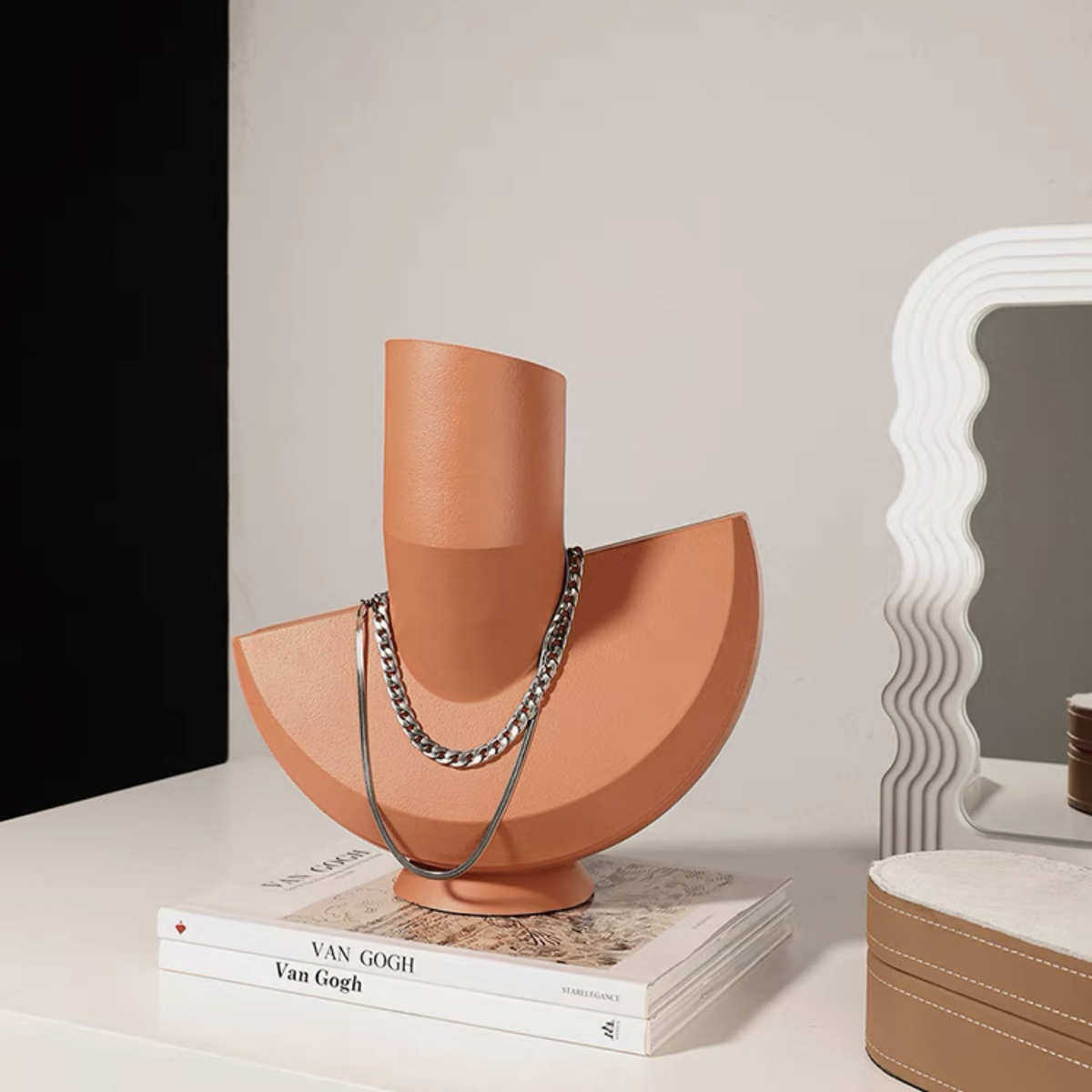 现代北欧极简砖红色抽象几何树脂首饰架摆件家居样板房软装饰品