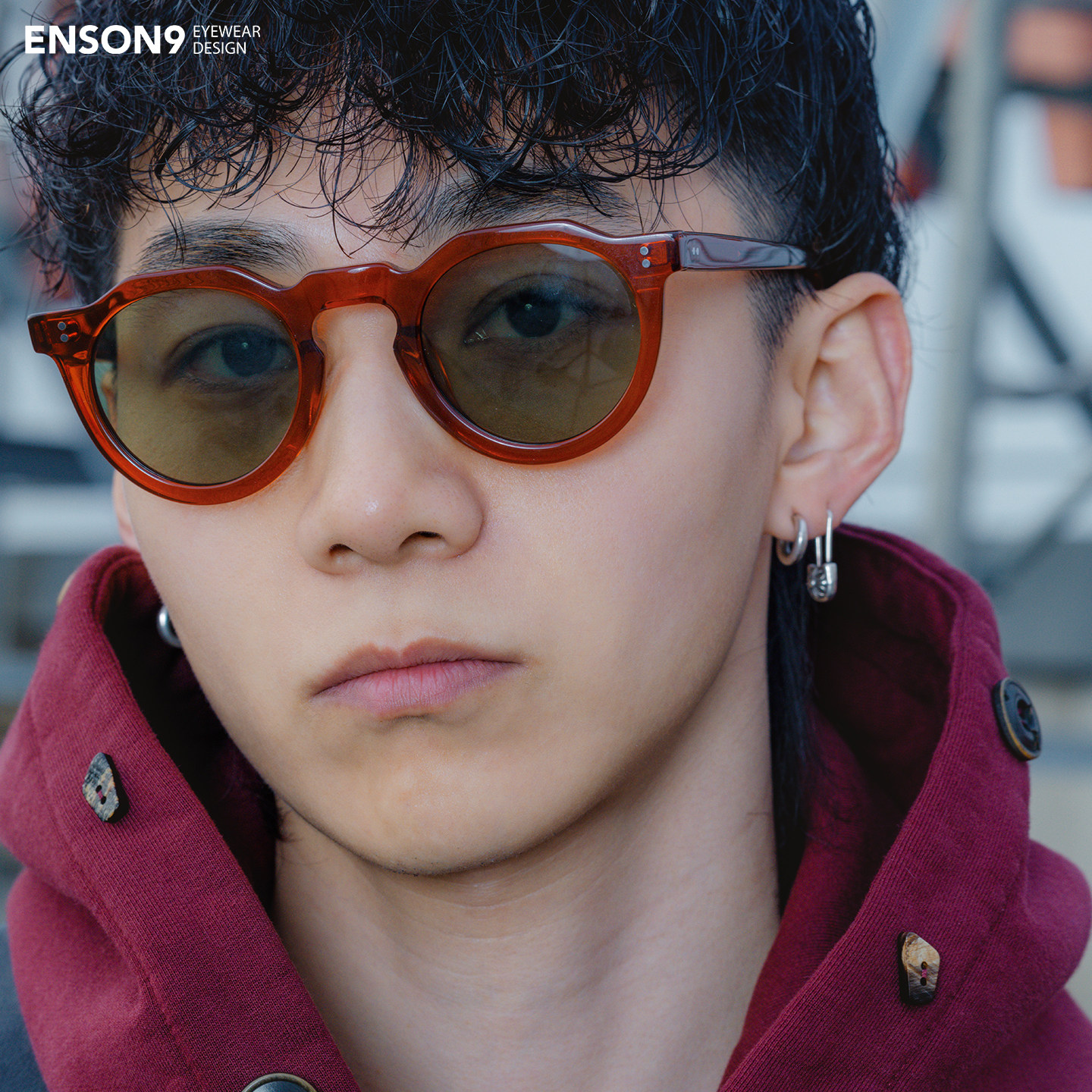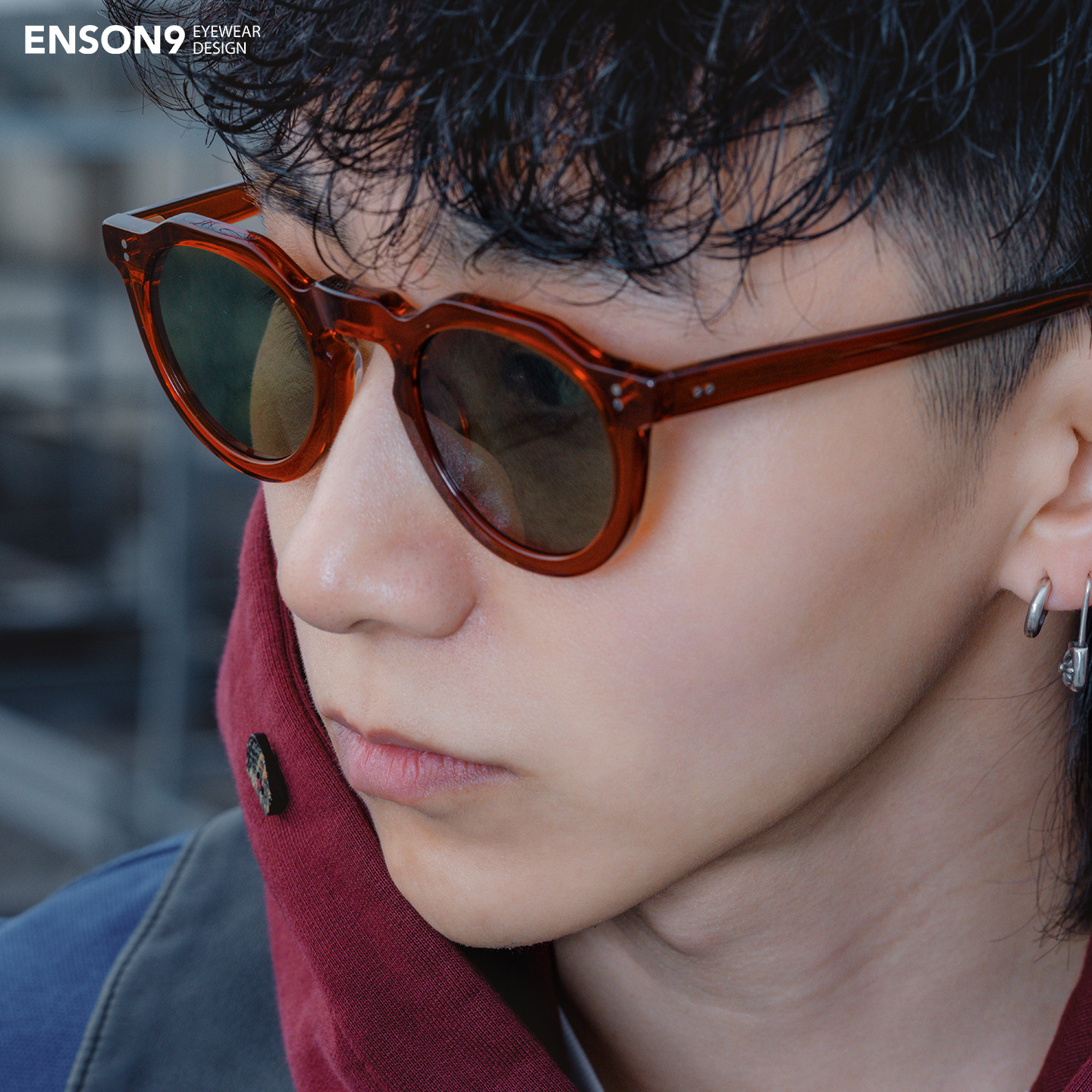 enson9高级焦糖红色板材大圆框太阳镜潮男女 复古粗框老钱风墨镜