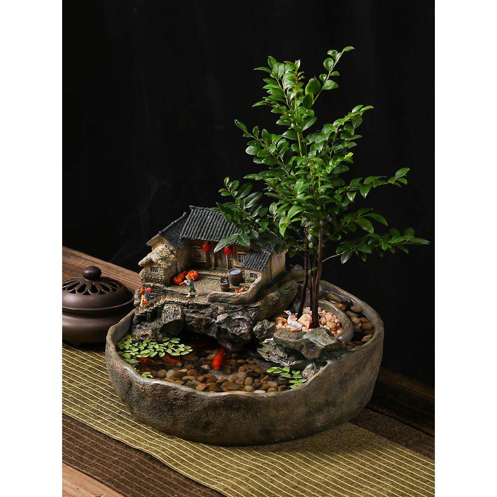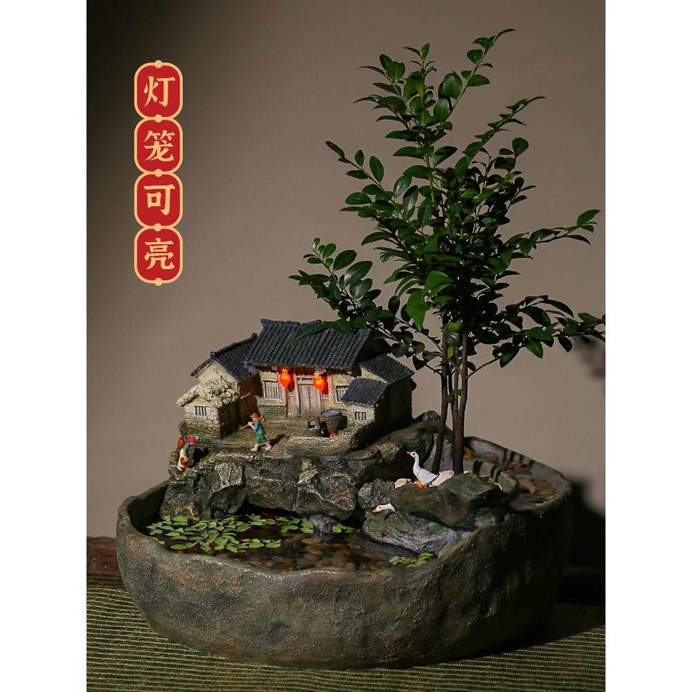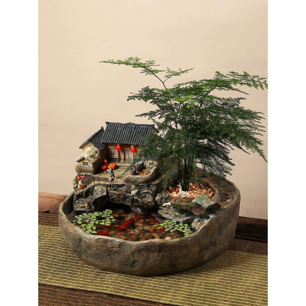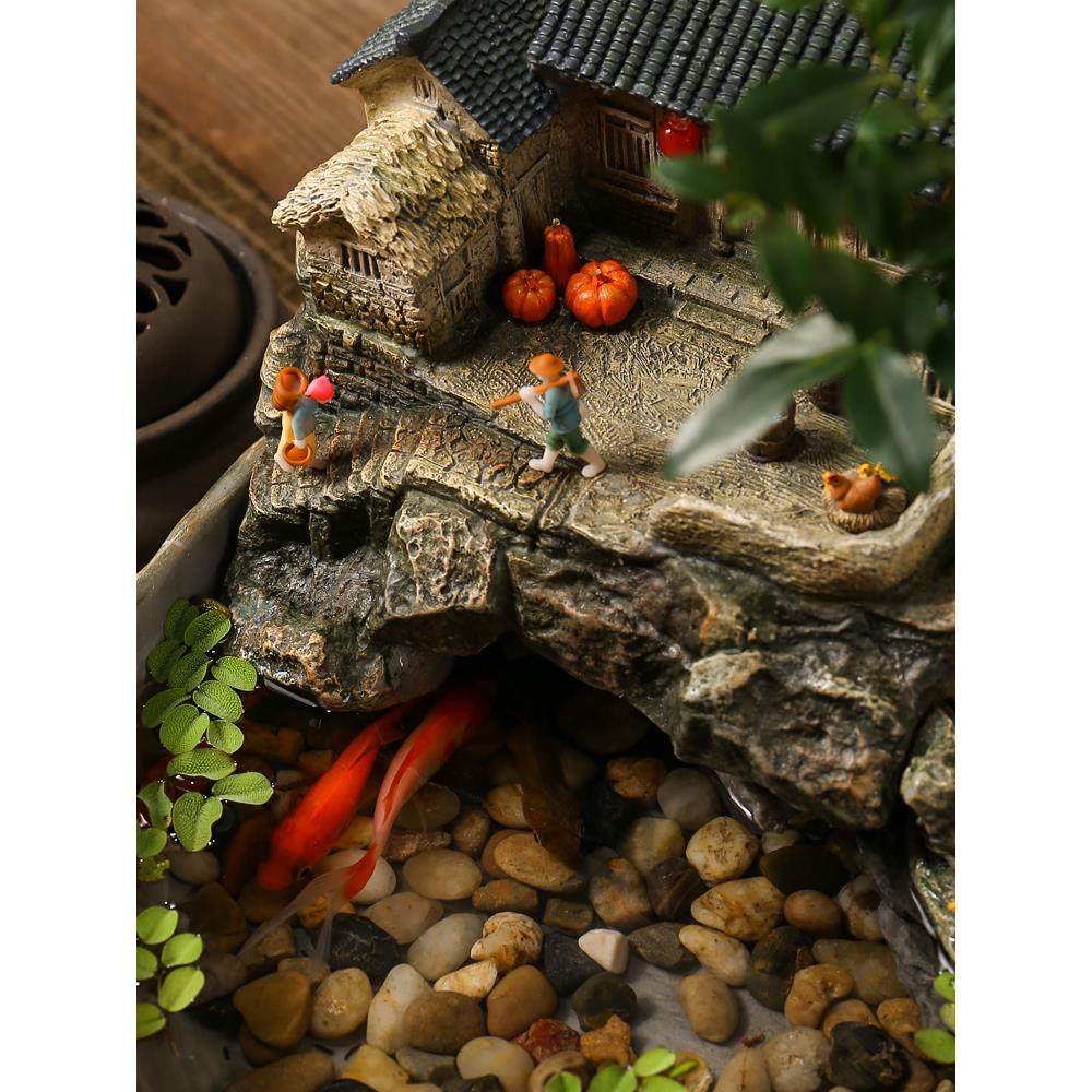 桌面微景观小鱼缸流水摆件循环水客厅办公室装饰开业乔迁新居礼品