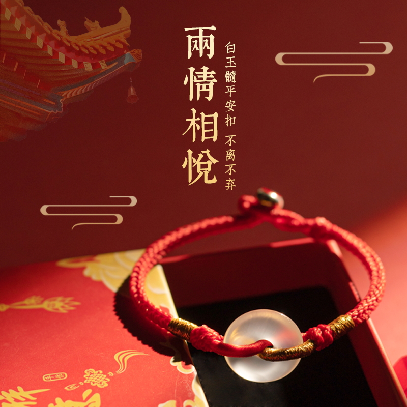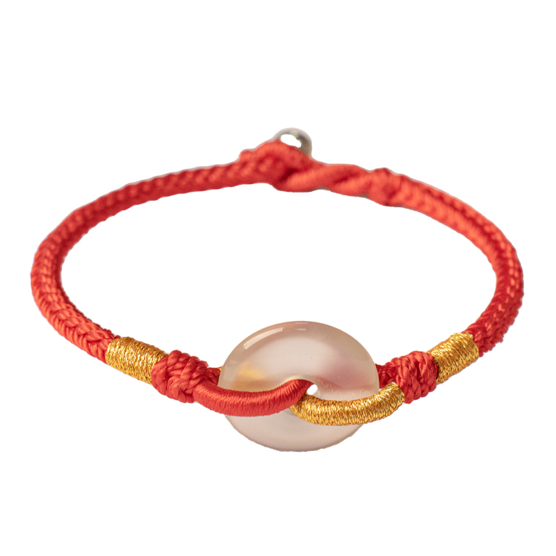 纯手工编织本命年红绳白玉髓平安扣手链女情侣一对男黑绳可调节款