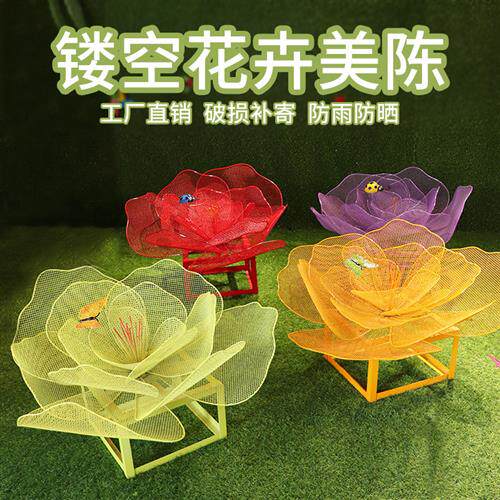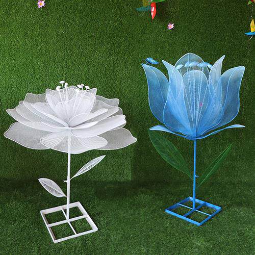 不锈钢镂空蝴蝶蒲公英雕塑金属发光荷花梅花鹿摆件景区售楼部装饰
