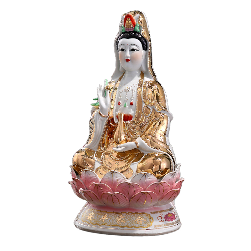 高档次南海观音菩萨家用供奉金身坐莲观世音菩萨佛像陶瓷家居摆件