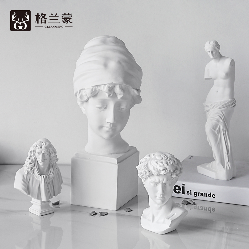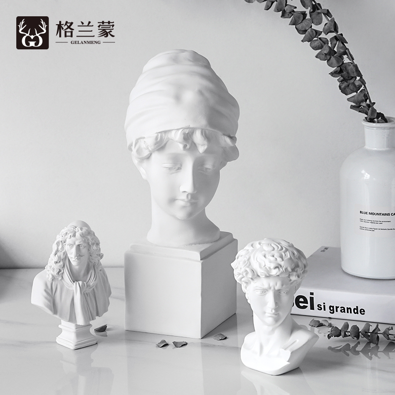 北欧文艺简约复古素描头像大卫立体树脂石膏像房间酒柜装饰品摆件