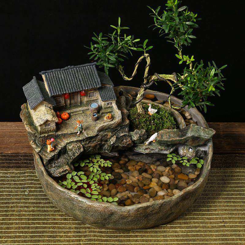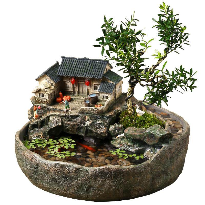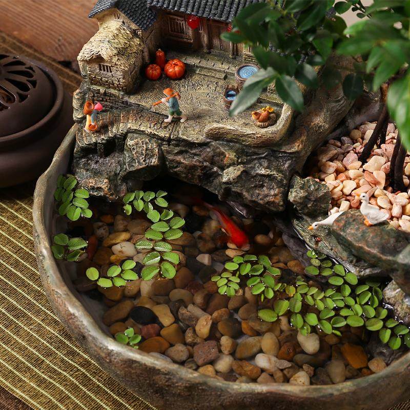 中式创意鱼缸流水摆件循环水客厅办公室装饰品桌面微景观开 业礼