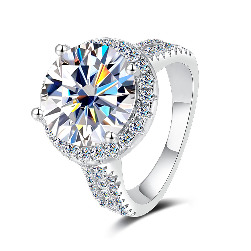 爆款S925纯银简约豪华圆包全莫桑石戒指鸽子蛋爆闪莫桑钻女戒