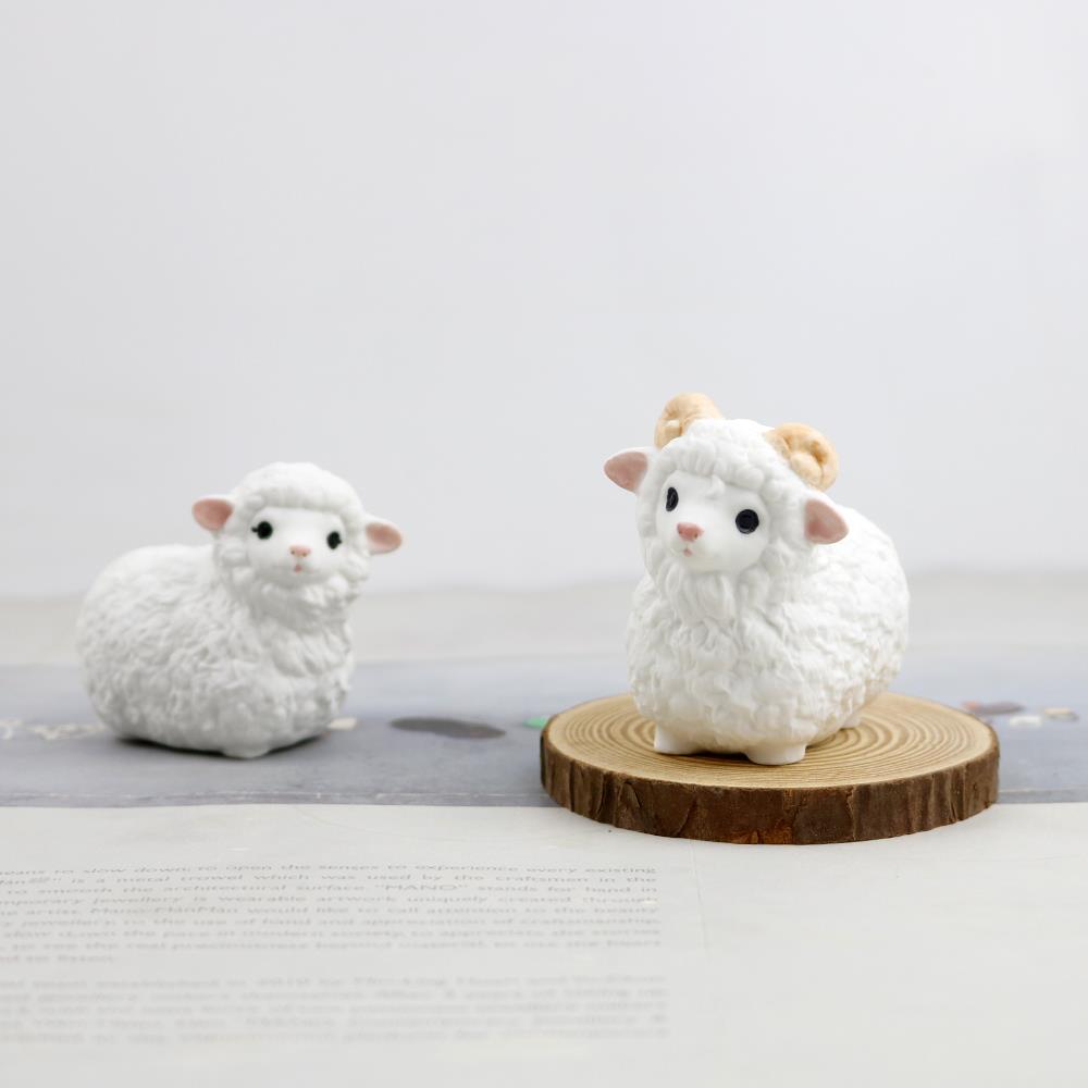 可爱小绵羊陶瓷摆件创意家居饰品生肖小羊马车载摆设办公桌面礼物