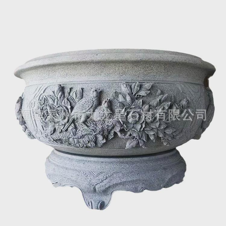 石雕青石鱼缸仿古石头花盆荷花石缸养鱼老式石槽室外石缸庭院水缸