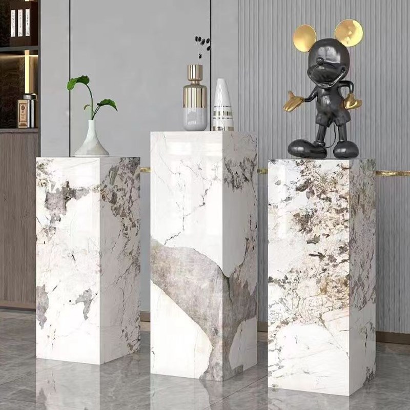 岩板花架定制别墅会所客厅沙发电视柜旁边创意落地底座摆件装饰品