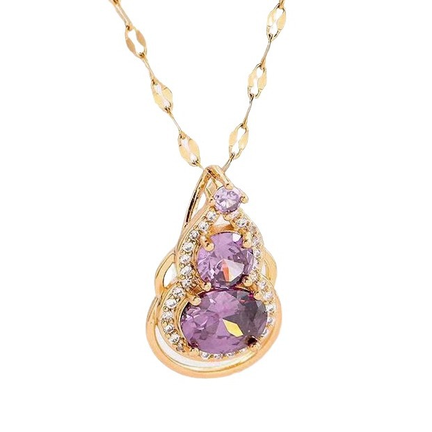 白紫粉色葫芦新款镶钻吊坠项链女轻奢小众设计感中国潮锁骨链饰品