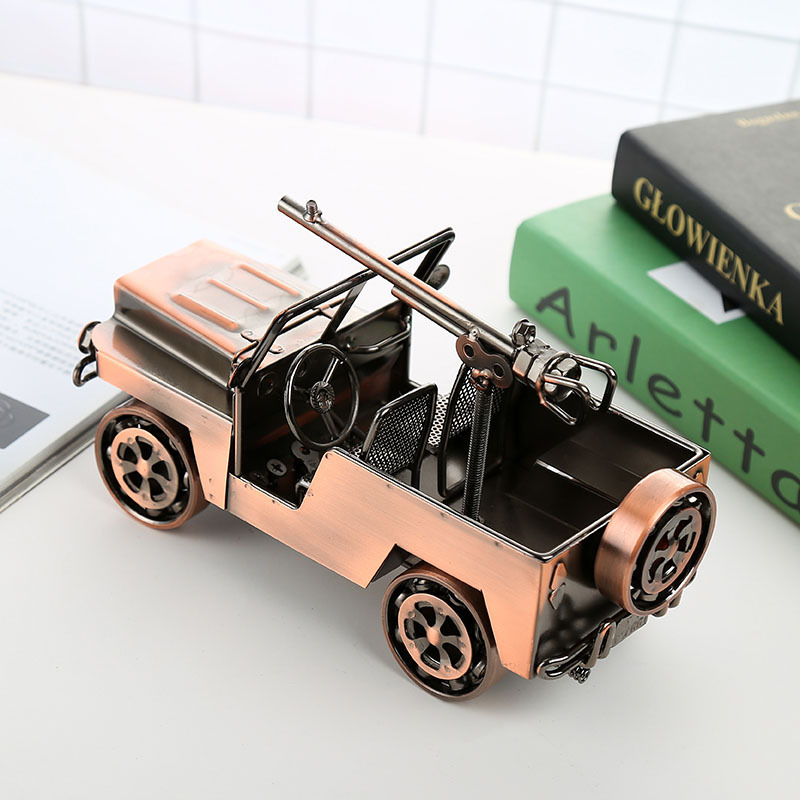 威利斯吉普车模型 复古铁艺汽车老爷车创意装饰品 金属工艺品摆件