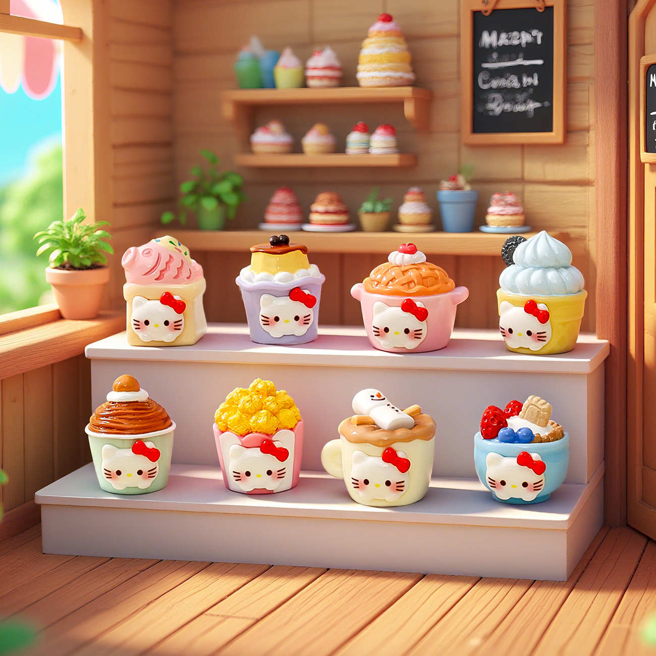 可爱猫咪甜品萌粒公仔潮玩树脂小摆件 diy办公装饰品盲盒盲袋批发
