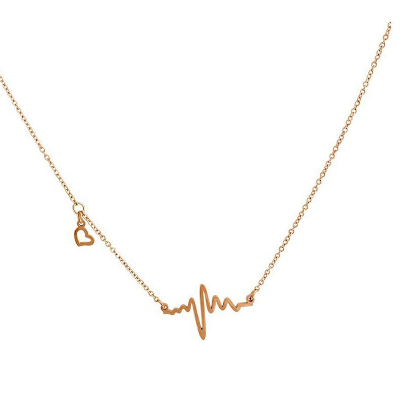 新款高级感简约钛钢心电图项链女金色轻奢锁骨链小众设计感颈链