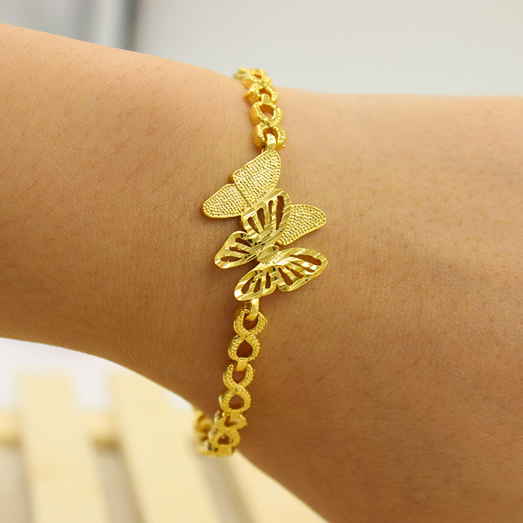 手链女双心越南沙金女士手链欧币黄铜皇冠24k镀金仿黄金情侣首饰