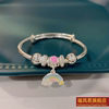 正生竹节草莓蝴蝶结祥云彩虹纯银手镯足银9999男女小孩学生中童镯