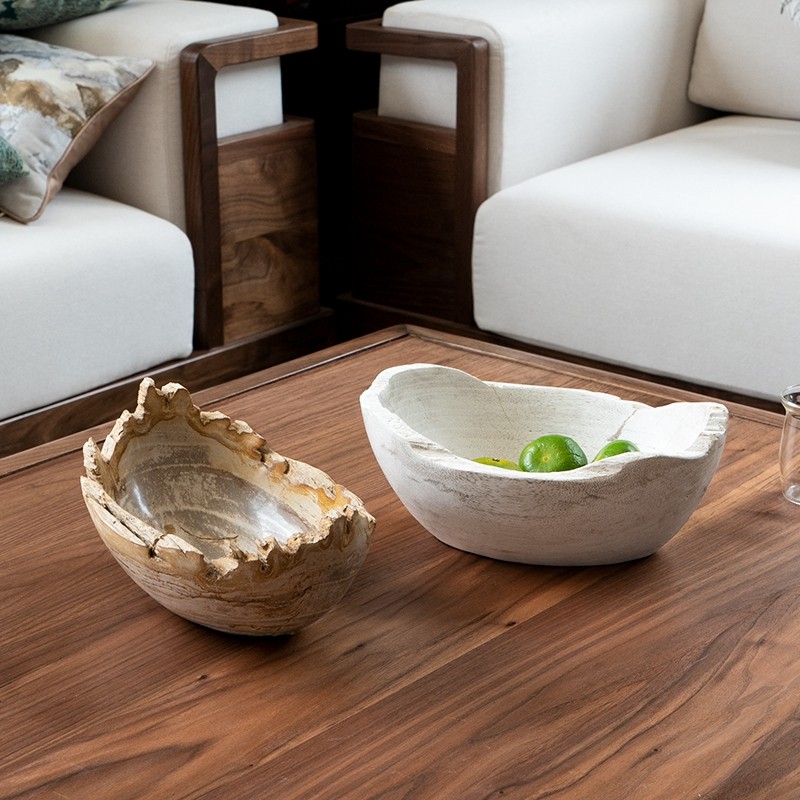 欧式现代轻奢木化石托盘北欧收纳盘水果盘酒店别墅客厅样板房摆件