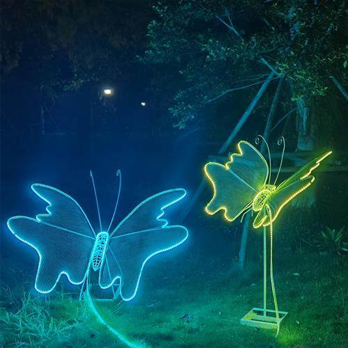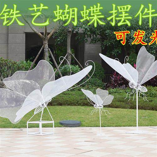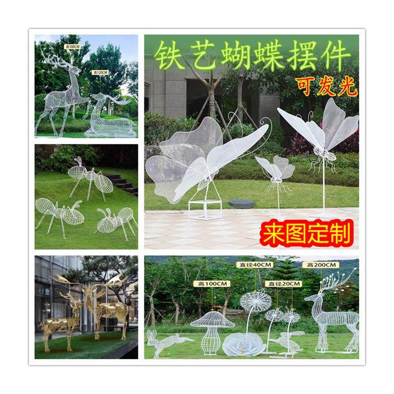 户外铁艺动物蝴蝶雕塑兔子摆件不锈钢镂空鹿发光蜻蜓蚂蚁装饰定制