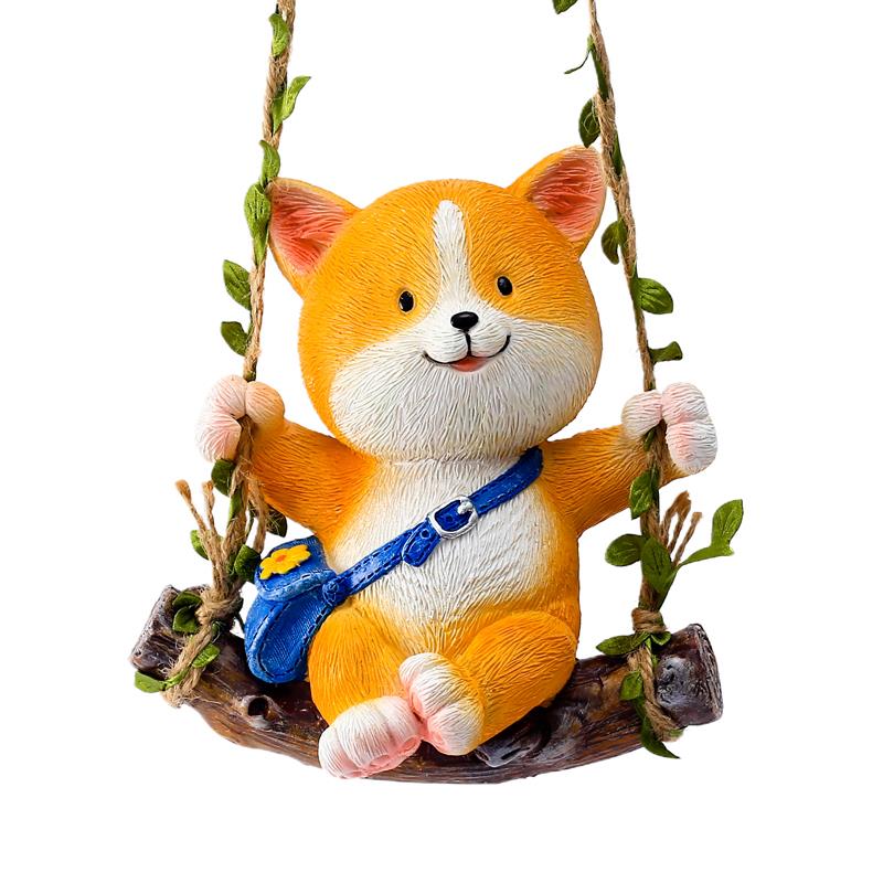 可爱小狗荡秋千树上挂件幼儿园户外花园阳台庭院太阳能灯装饰摆件