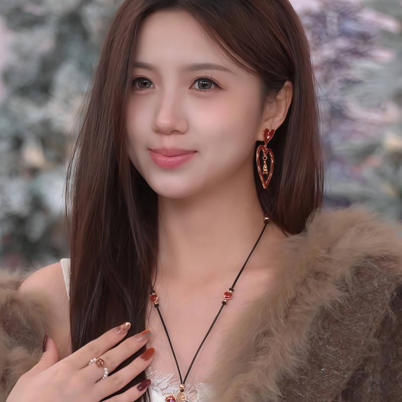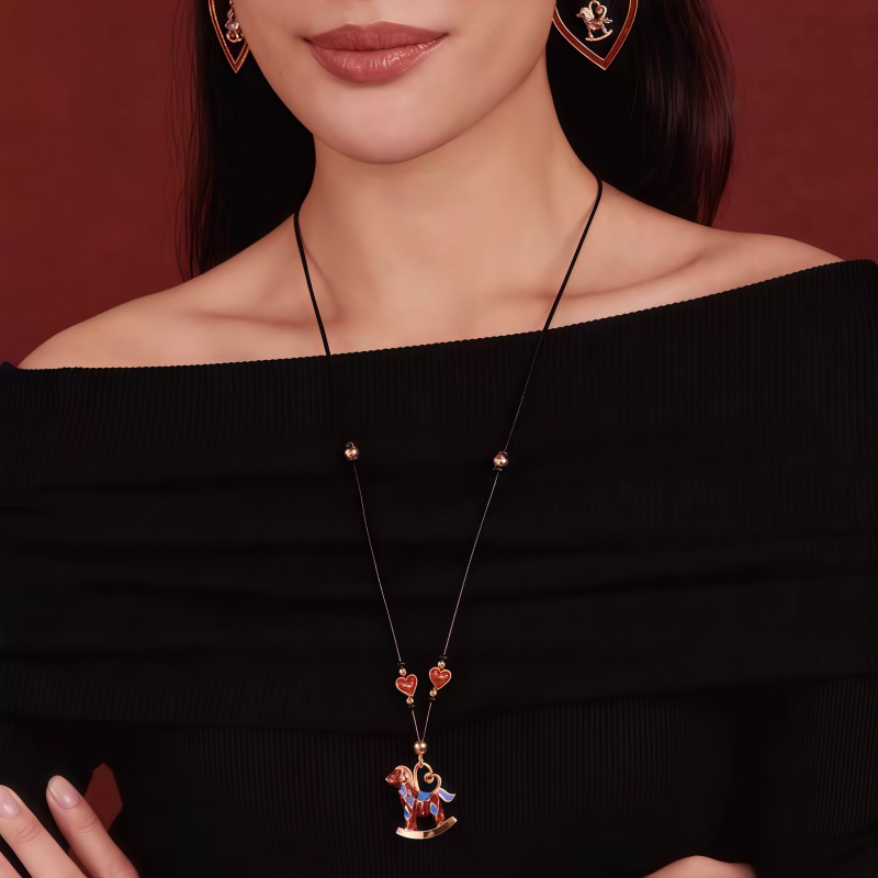 【新款】珐琅爱心星运福马耳钉新年红色气质戒指饰品礼物
