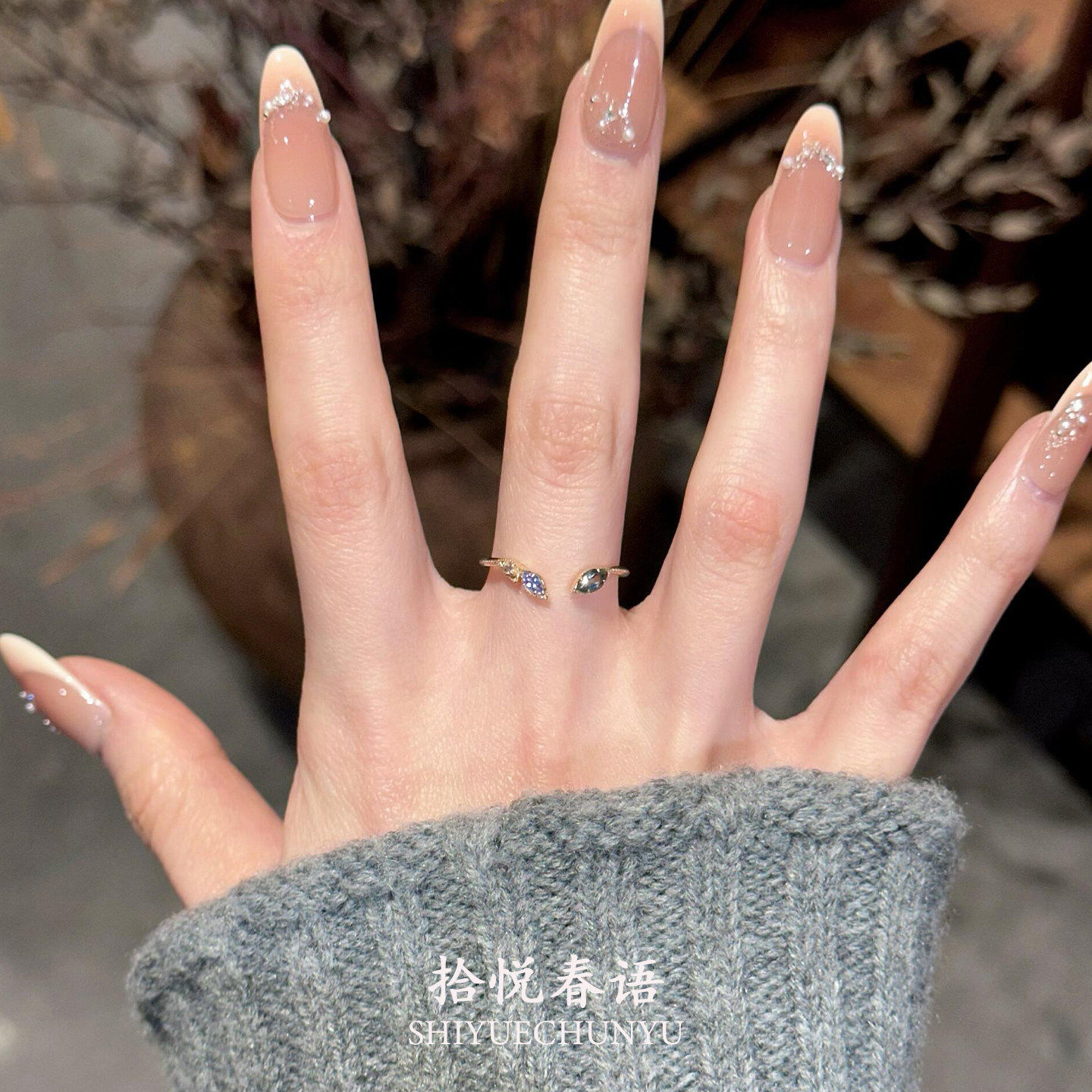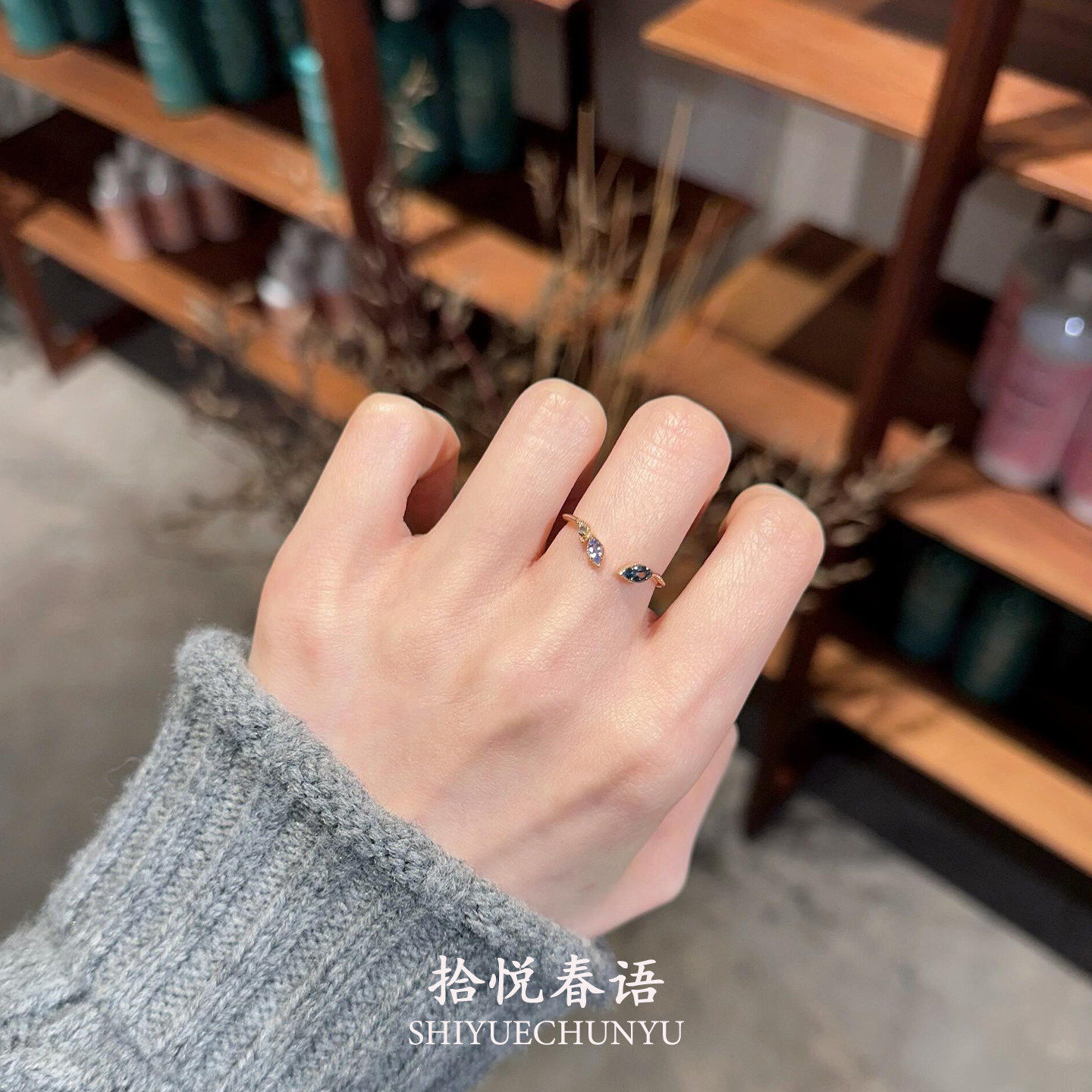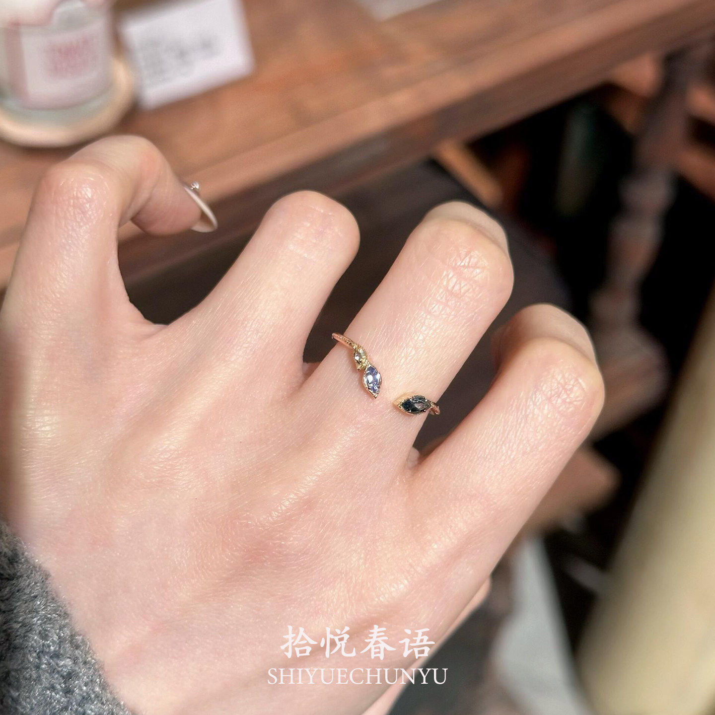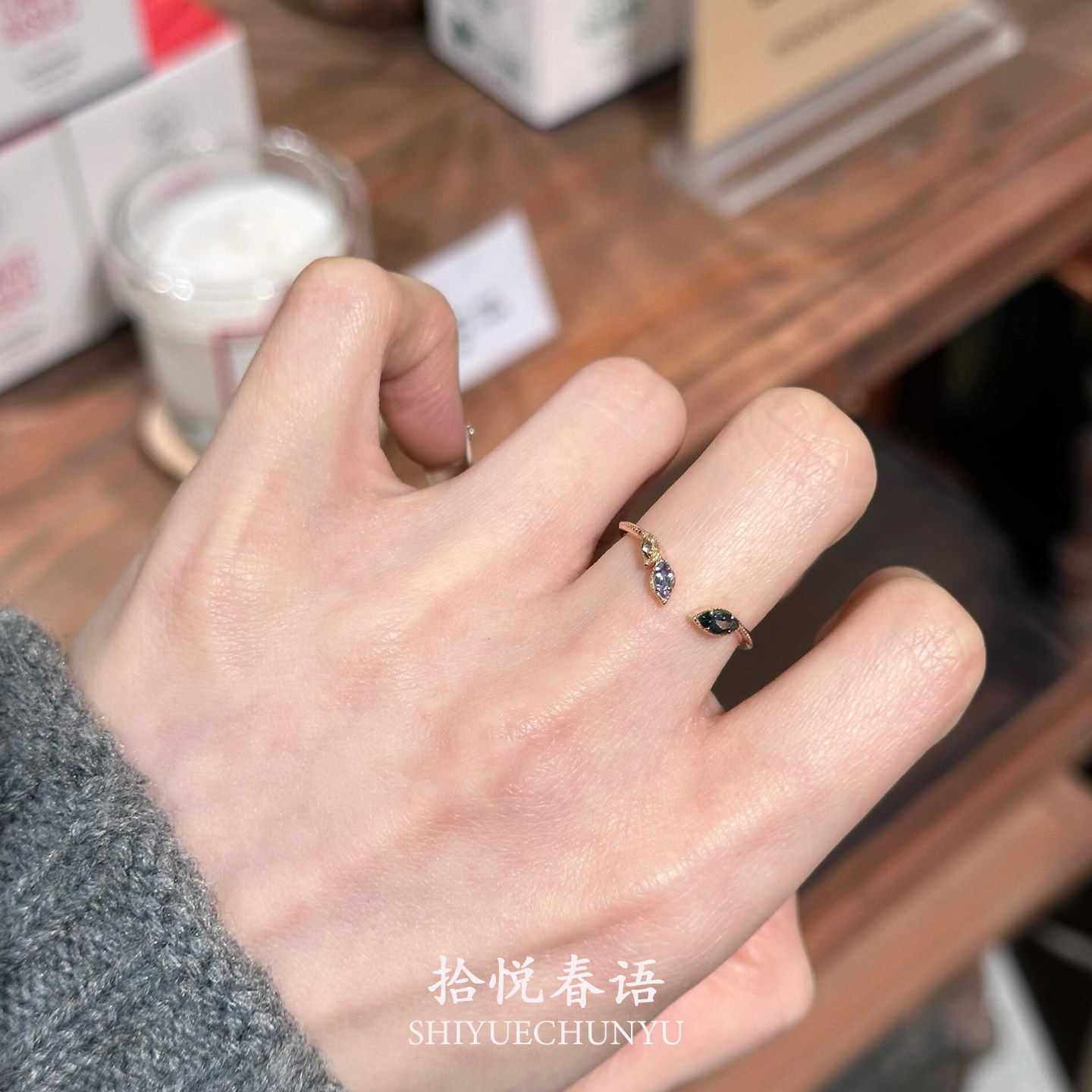 S925纯银蓝紫色马眼钻树叶戒指女2026新爆款轻奢高级感食指戒指环