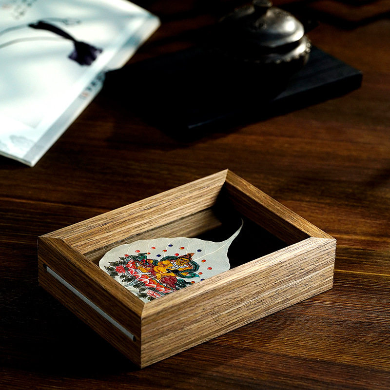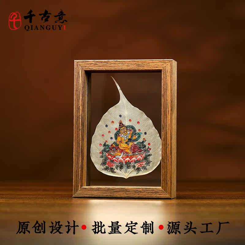 R70V木质彩绘菩提叶摆台生肖本命黄财神树叶标本可定图高透玻