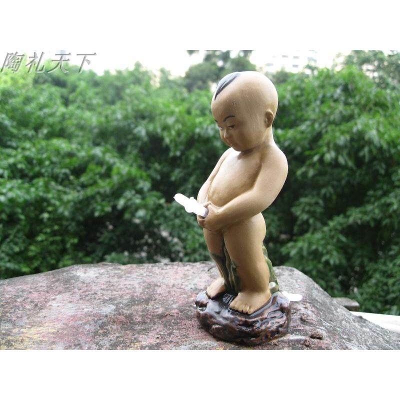 假山盆景配件上水石陶瓷尿童鱼缸摆设喷水小孩人物摆件水族装饰品