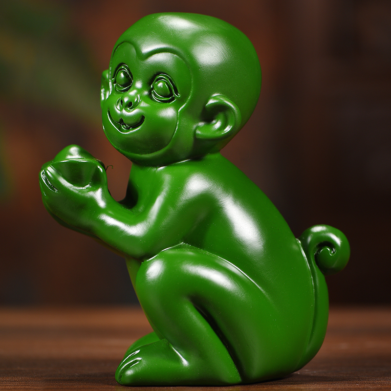绿色猴子木雕摆件实木招财小猴子十二生肖猴纯木质家居客厅装饰品