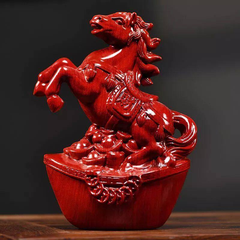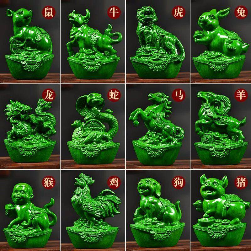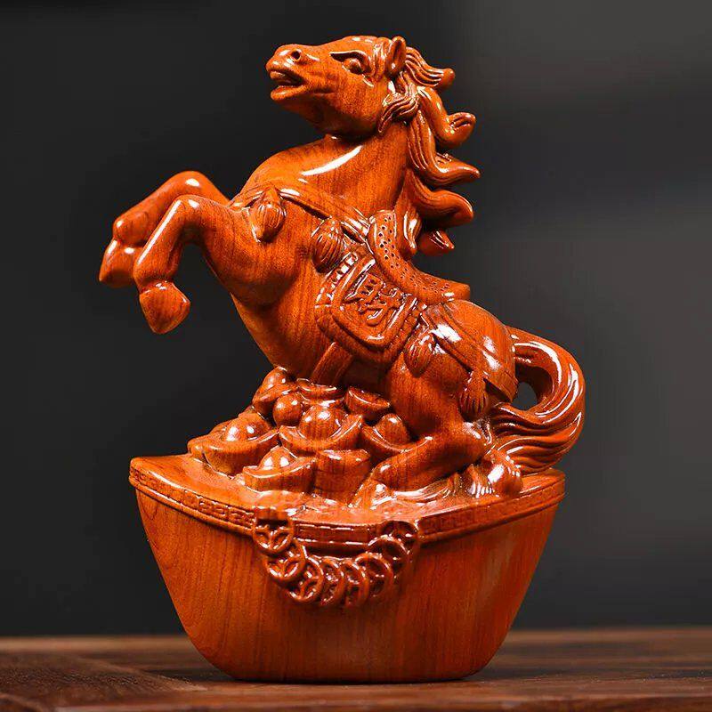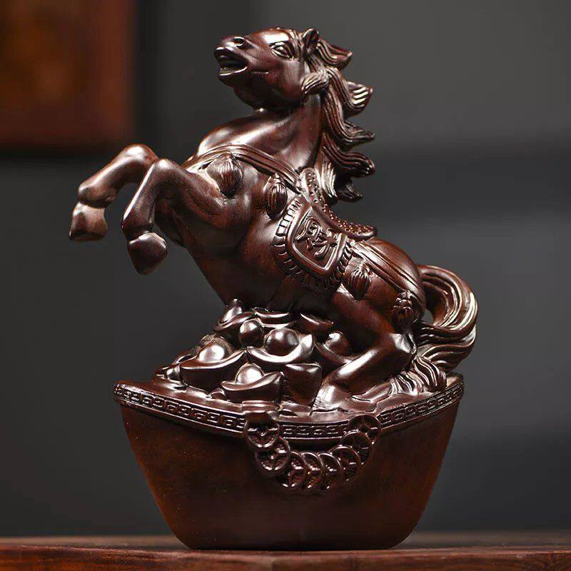 绿色实木质雕马摆件中式马到成功工艺品办公室桌装饰家居酒柜摆设