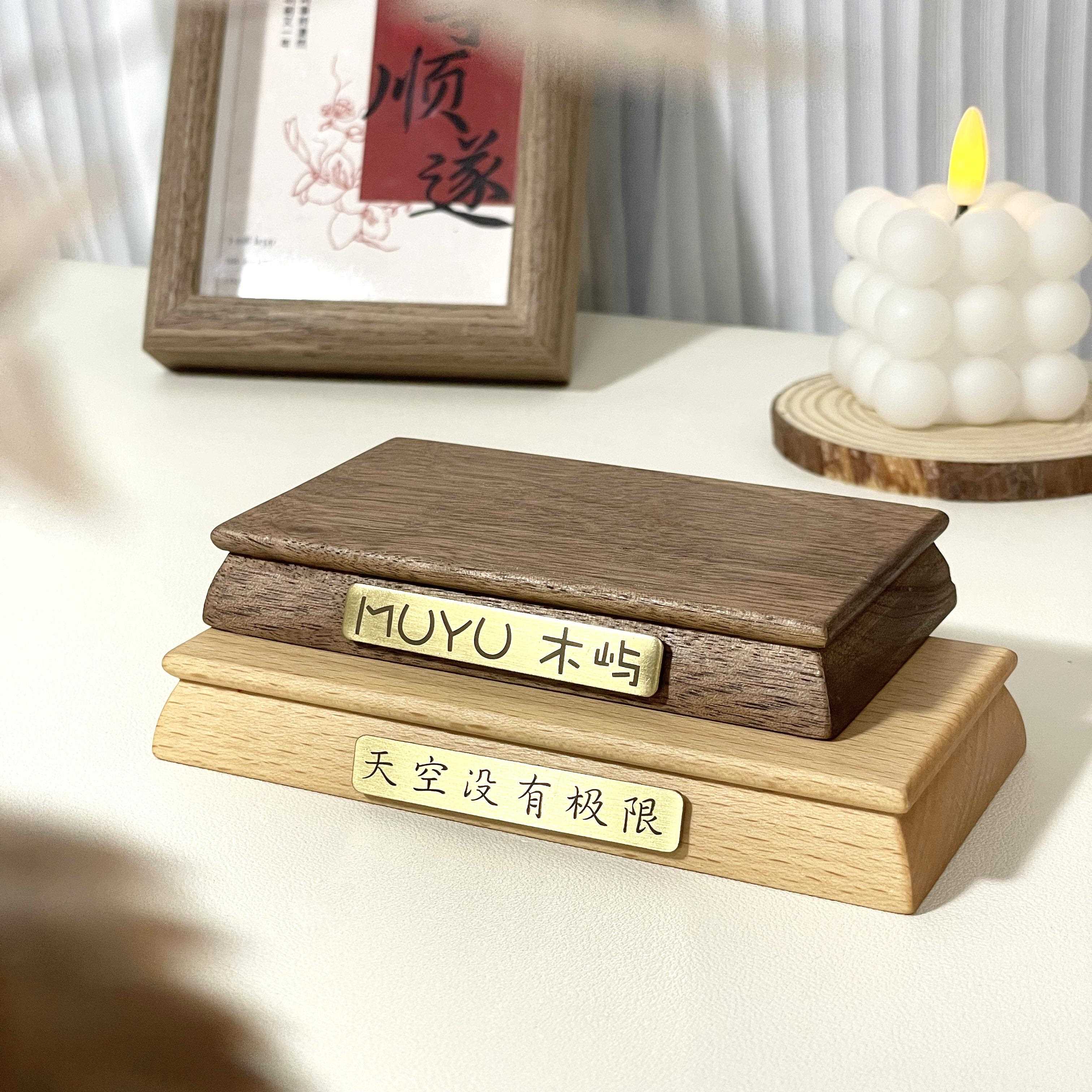 胡桃木榉木铜刻字质感氛围小众乔迁新婚生日公司礼物摆件装饰底座