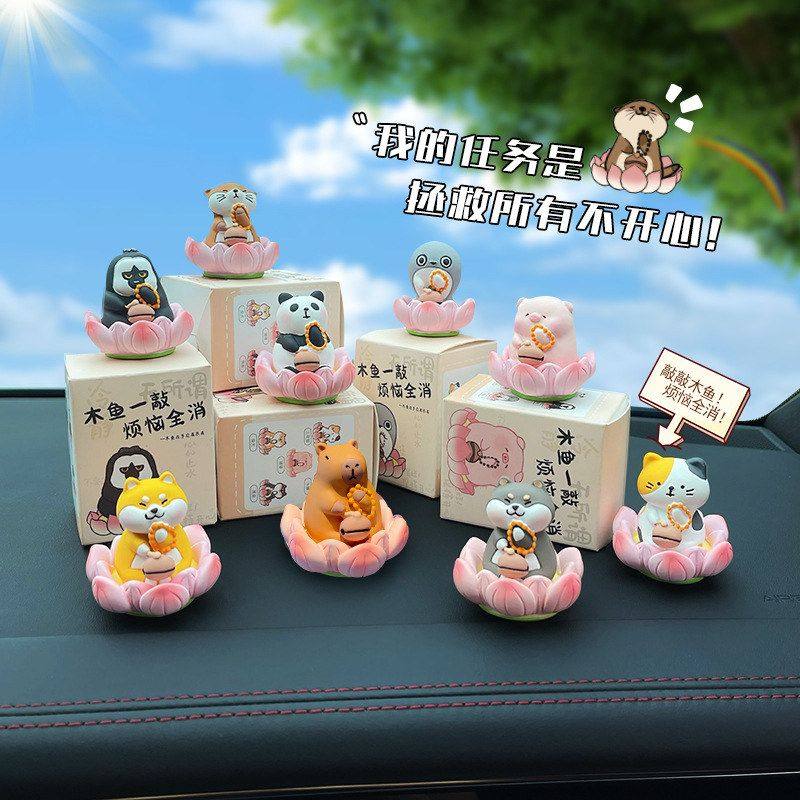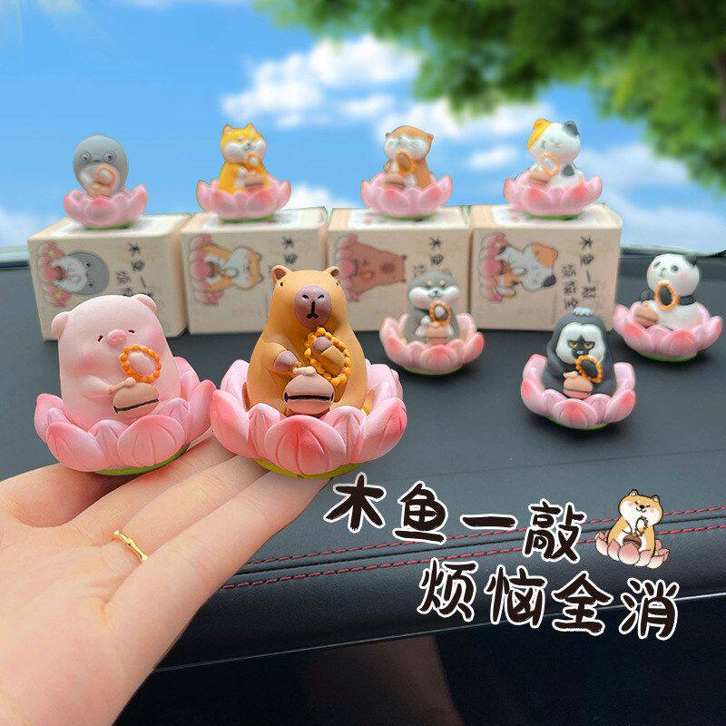 桌面公仔装饰品摆件内饰居家原创好运莲莲佛系摆件树脂可爱车载女