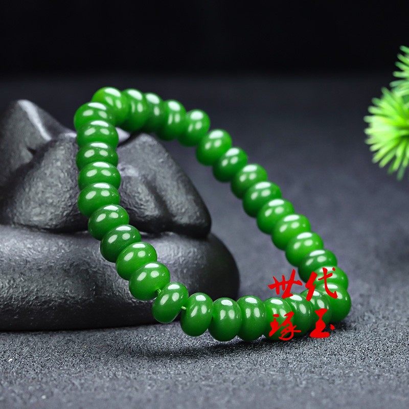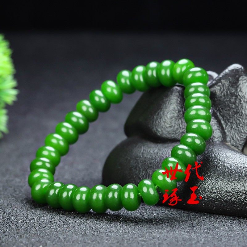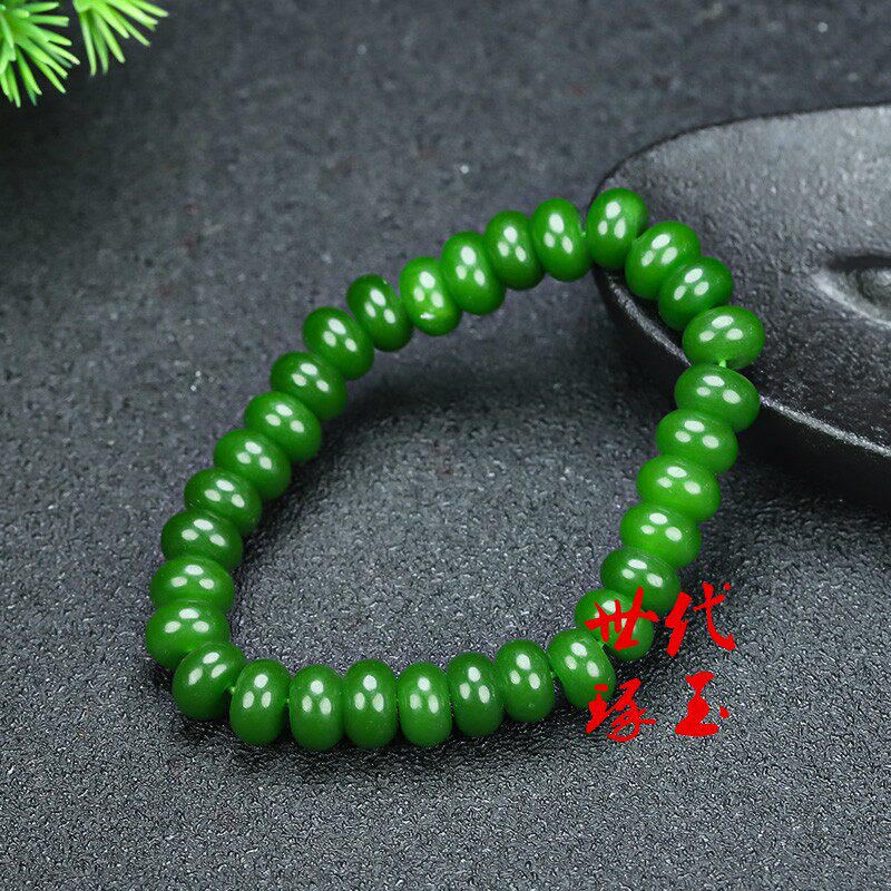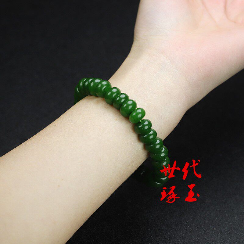 天然和田玉碧玉手链新疆玉菠菜绿算盘珠手串玉石珠子手串男女款