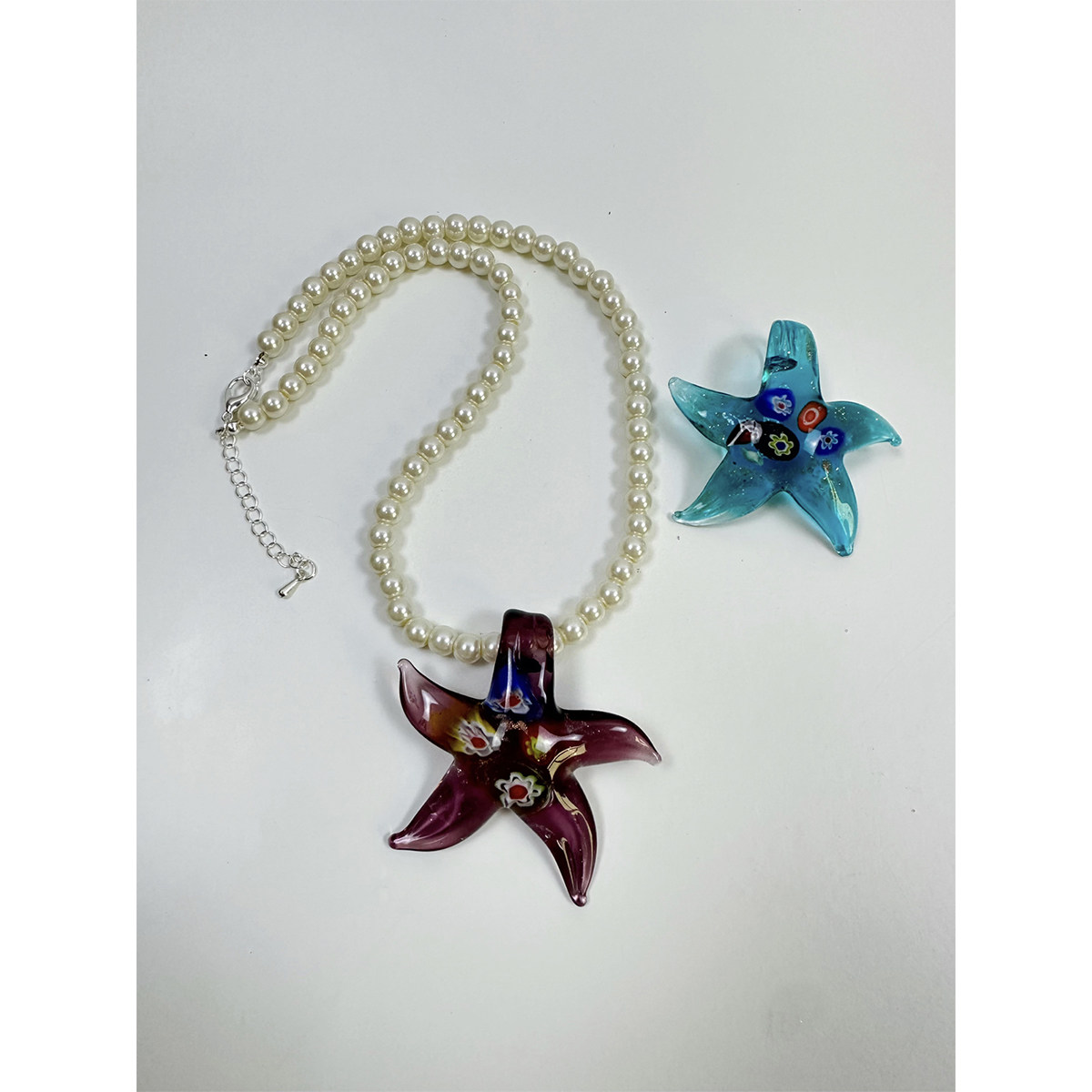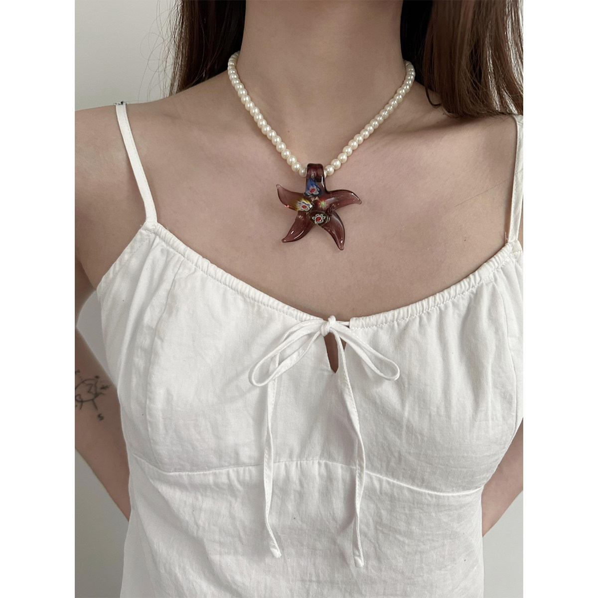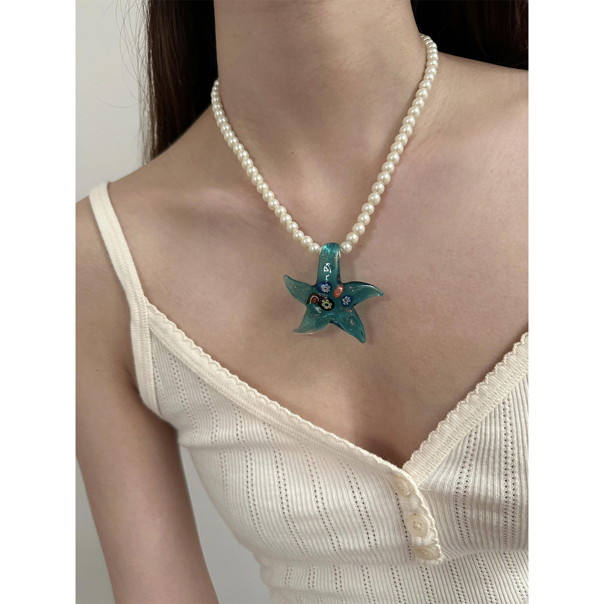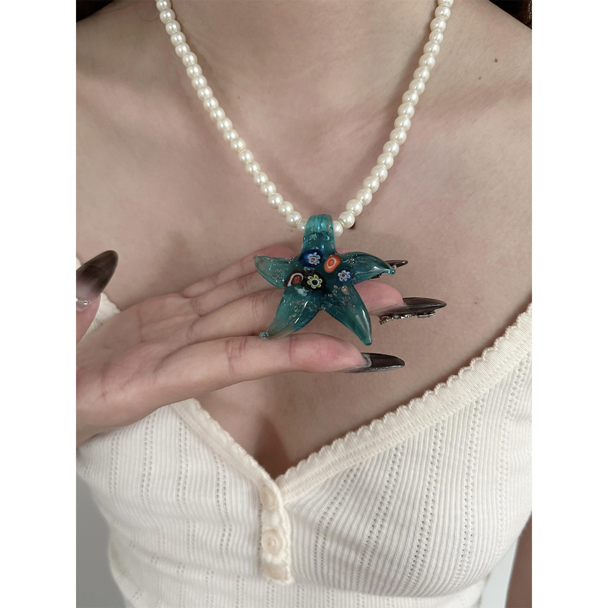 atmshop手工琉璃夸张花朵海星仿珍珠项链度假海洋可爱精致锁骨链